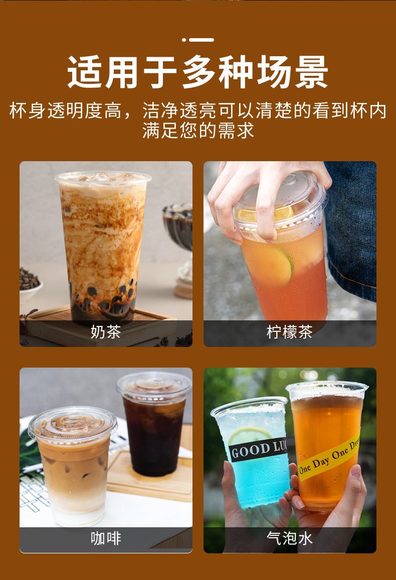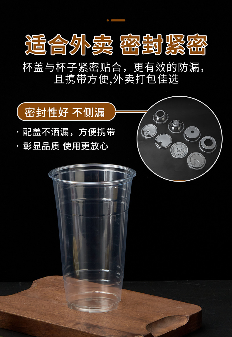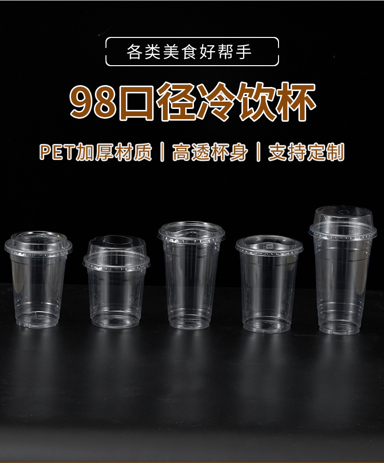 Taza de té de leche desechable de calibre 98 500 / 700 taza de té de plástico gruesa taza de jugo de leche con tapa