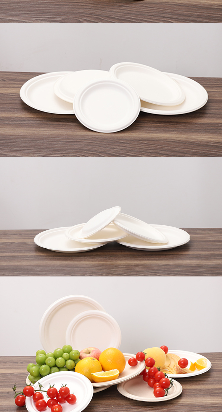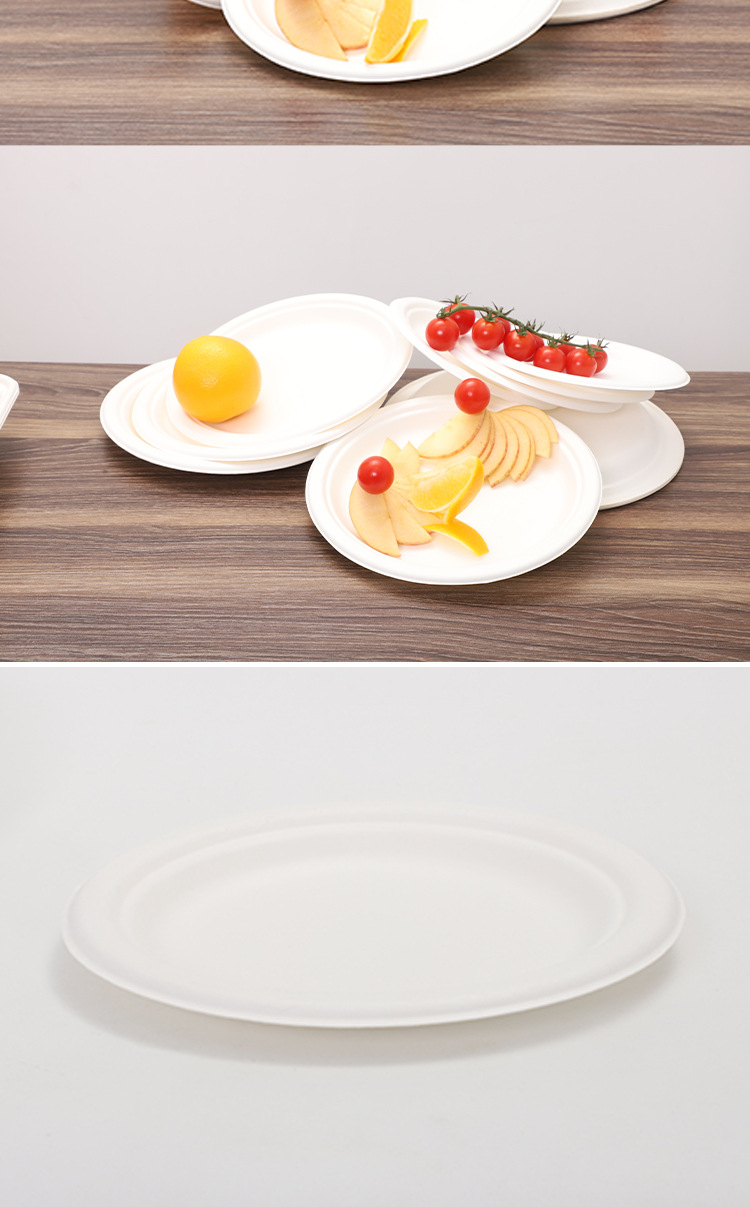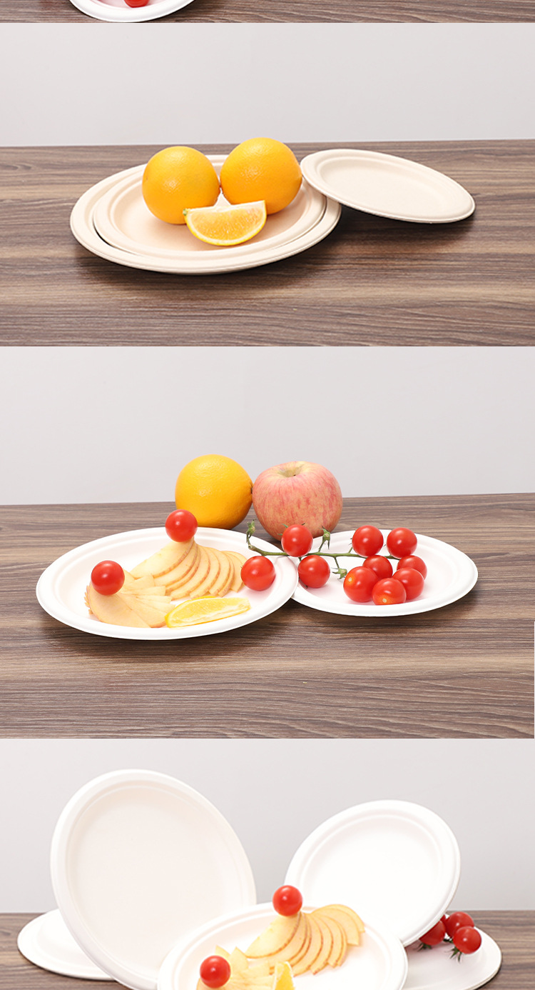 Bacia de azúcar cubiertos desechables disco degradable grado alimenticio fuente de pulpa de picnic al por mayor