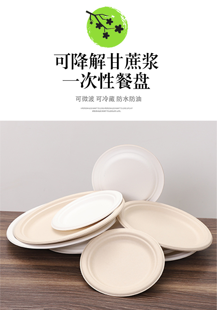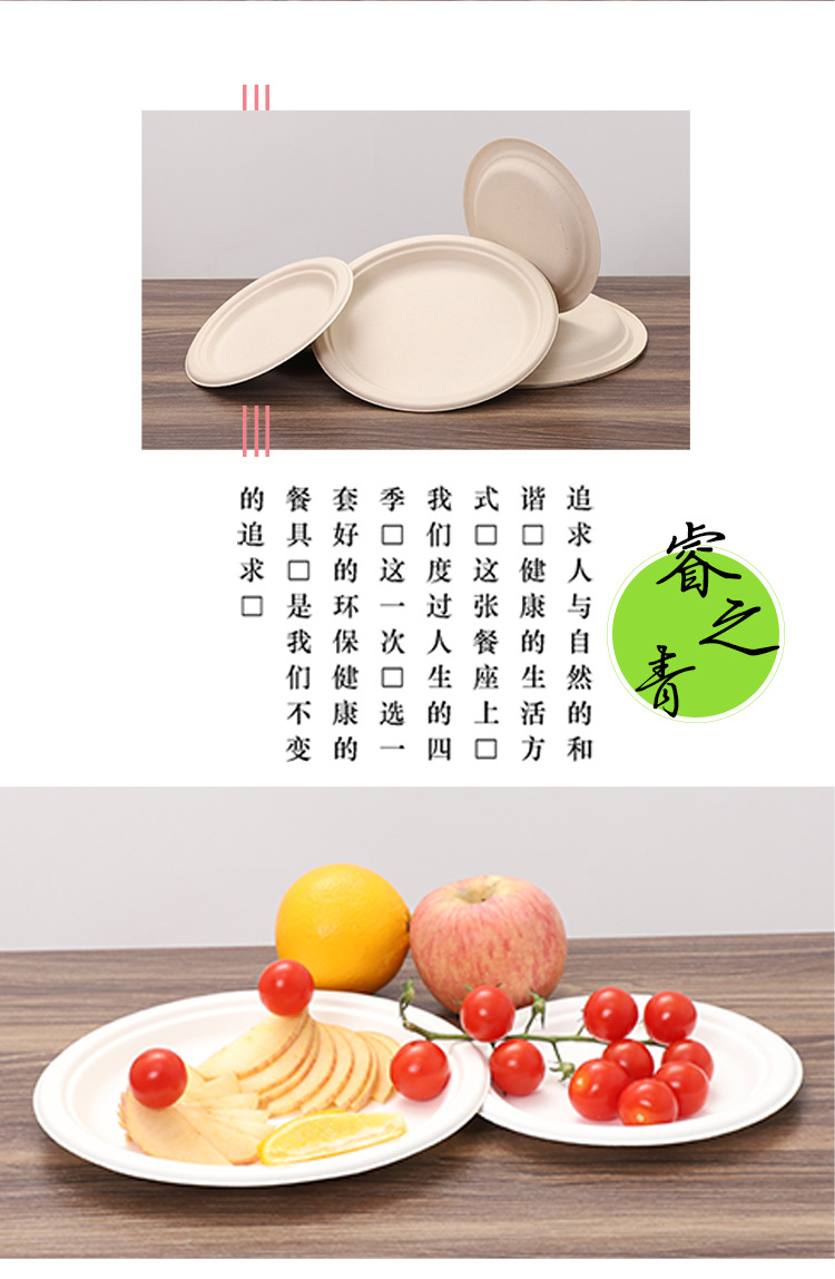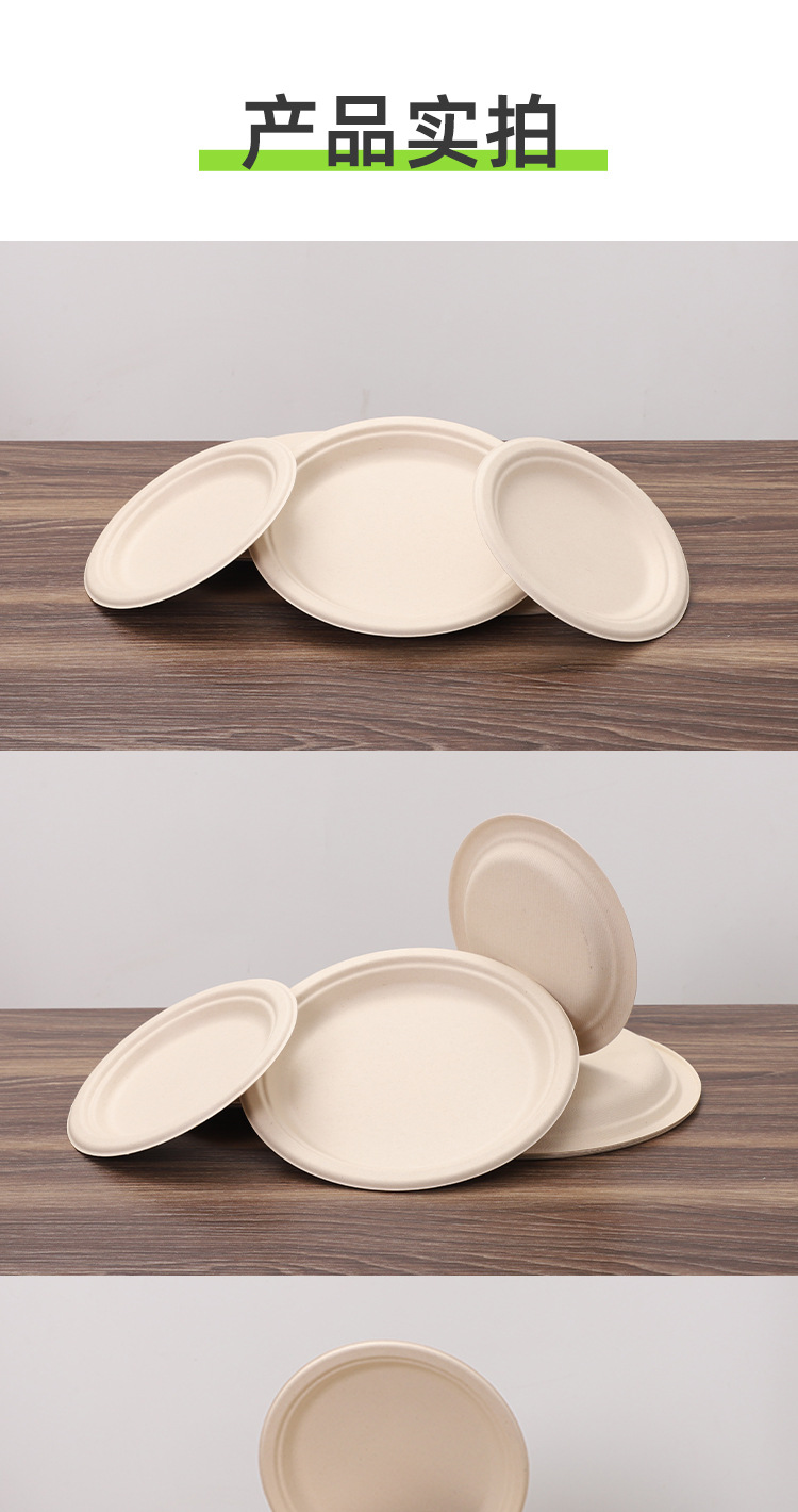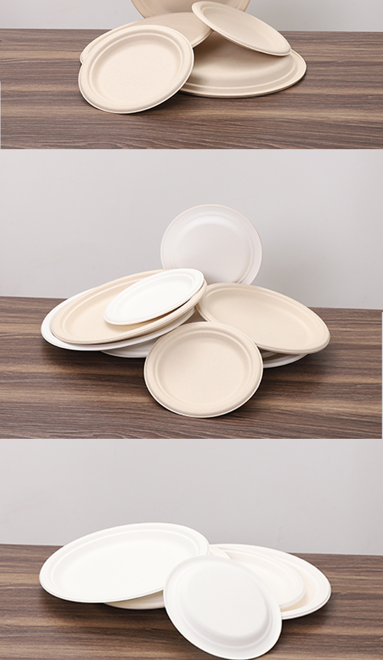 Bacia de azúcar cubiertos desechables disco degradable grado alimenticio fuente de pulpa de picnic al por mayor