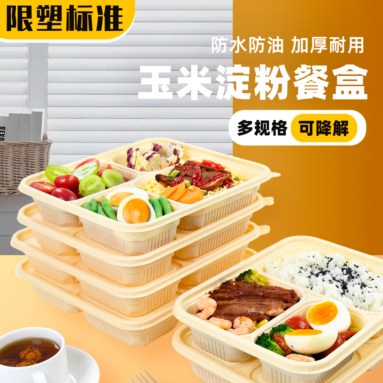 Caja de comidas desechable degradable con microondas de calentamiento de cuatro compartimentos y cinco compartimentos de almidón de maíz caja de embalaje biodegradable