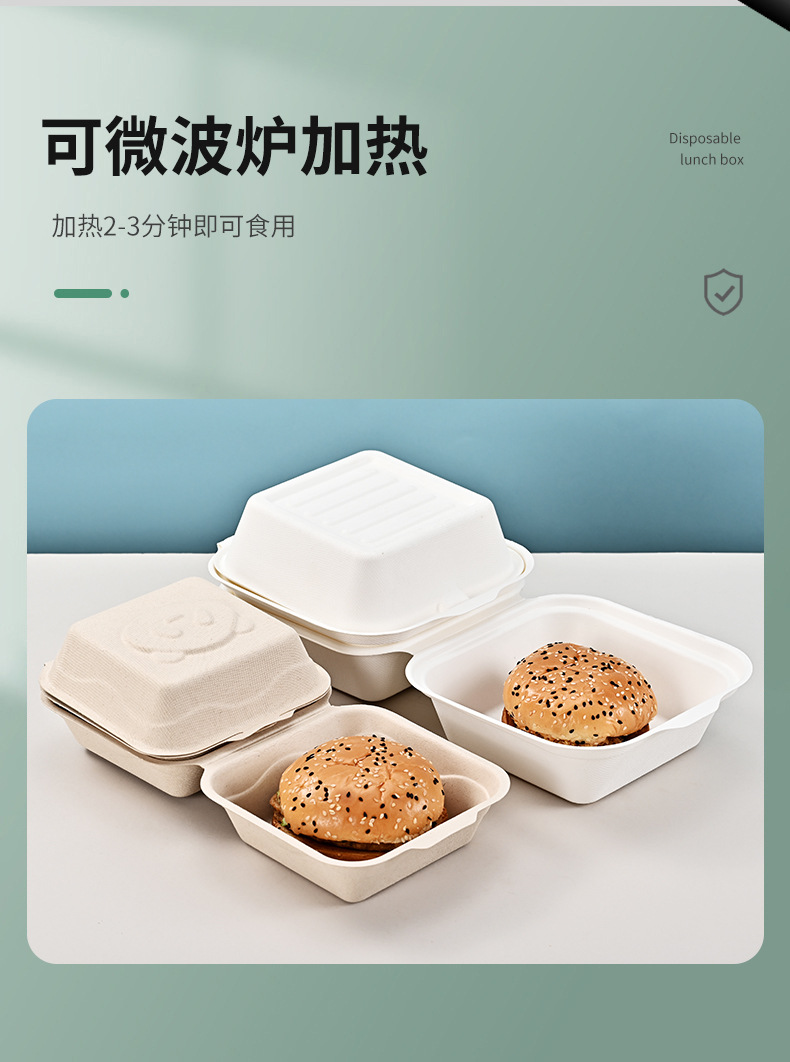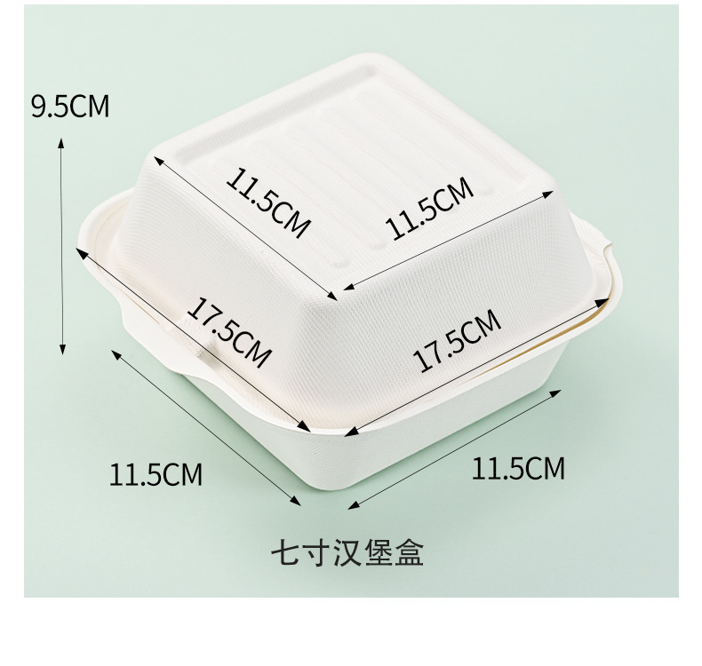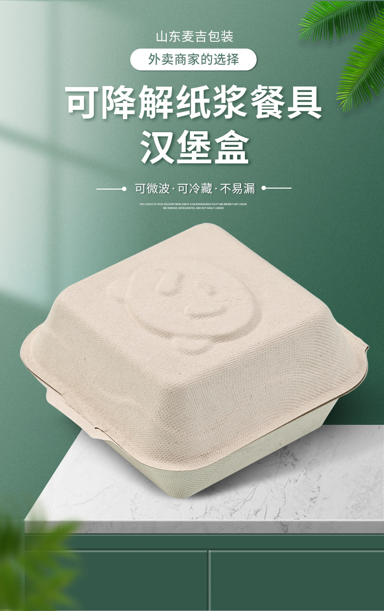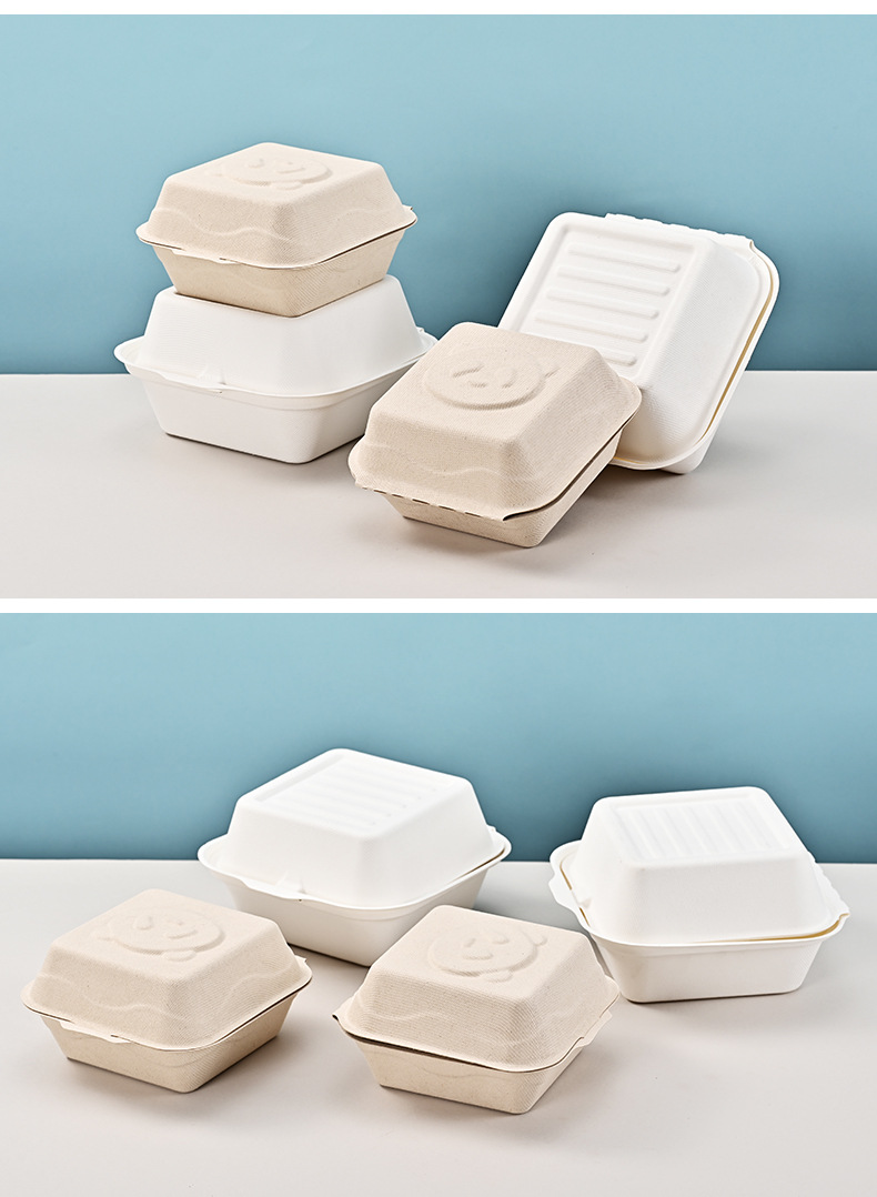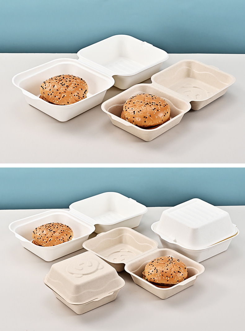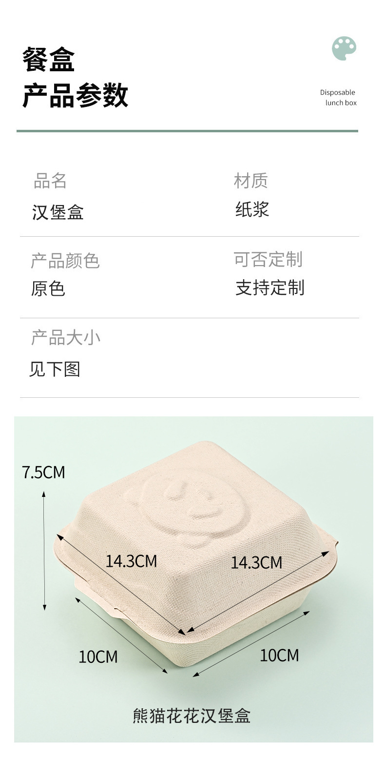 Caja de hamburguesas de flor de panda degradable desechable, postre horneado, caja de embalaje para llevar, tiramisu, caja de hamburguesas de siete pulgadas