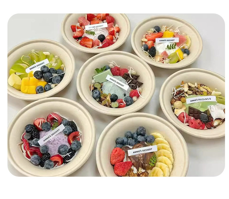 Tazón de pulpa de papel desechable Tazón de yogur de extracto frío de celebridades de Internet Polvo de hielo desechable Tazón de papel de pesca de frutas Tazón de embalaje Caja comercial