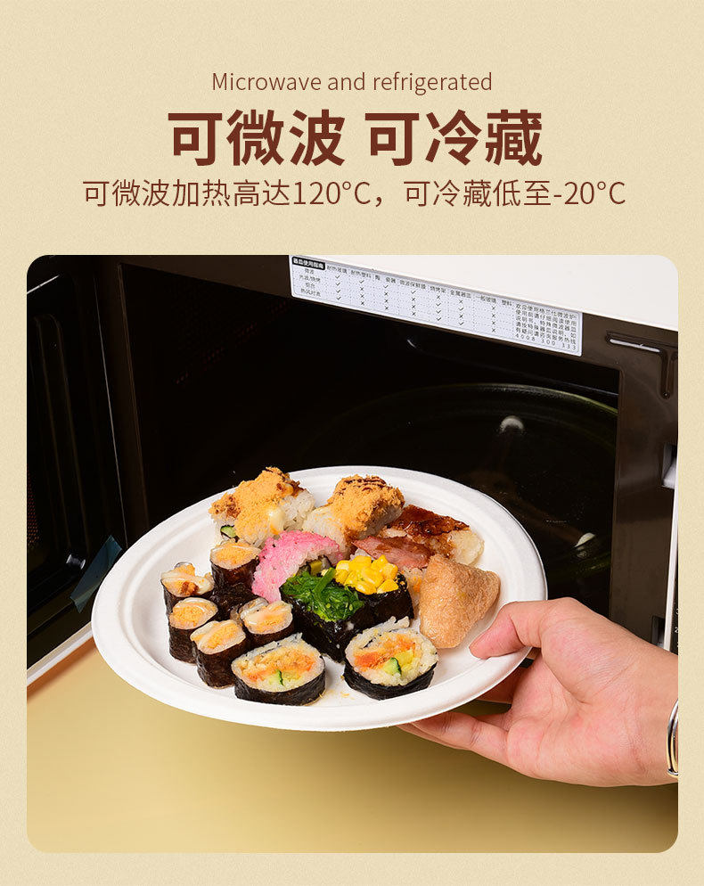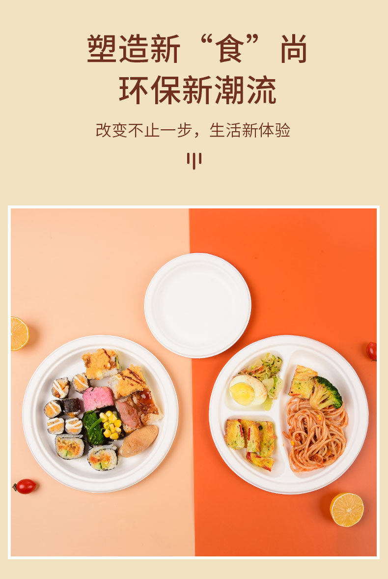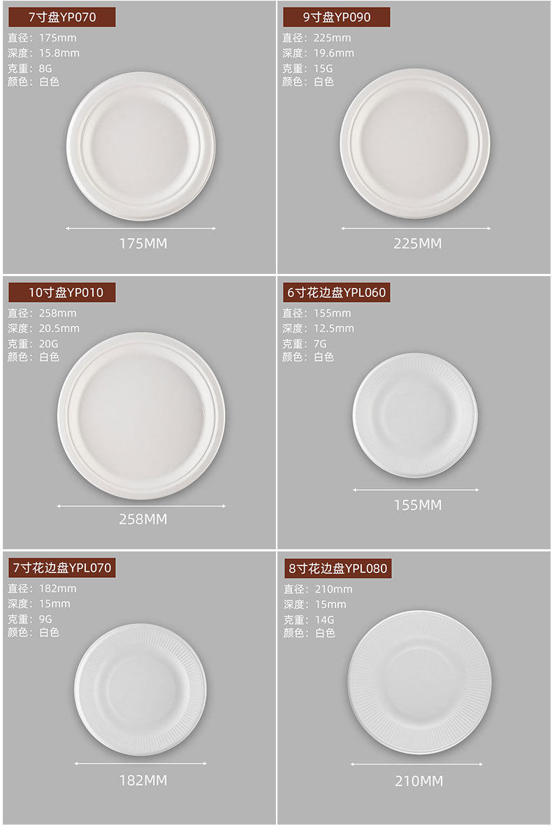 Bandeja de papel desechable, tazón de papel, pulpa de caña de azúcar, barbacoa al aire libre degradable, plato de pastel de cumpleaños, juego de plato grueso