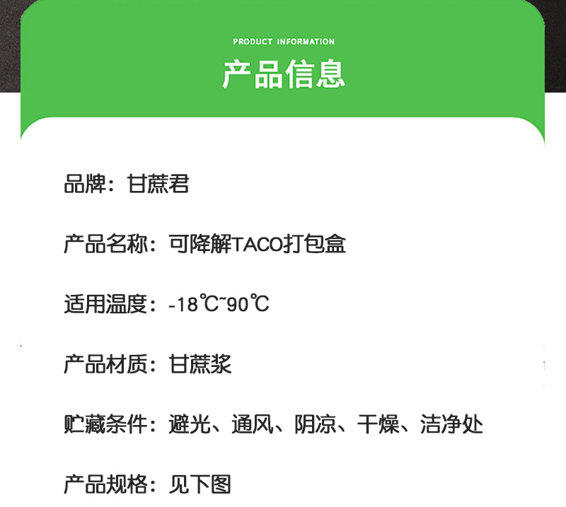 | Tamaño | Caja de taco sin tapa, caja de taco + tapa transparente PET, caja de taco unida |