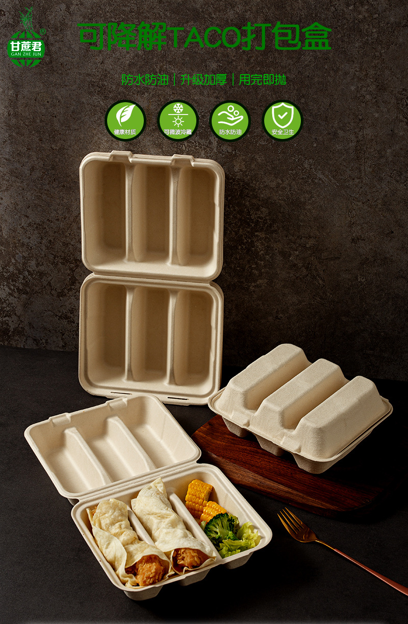 Caja de comidas de pulpa americana desechable degradable Taco Tower Caja rectangular para llevar Caja de embalaje gruesa dividida