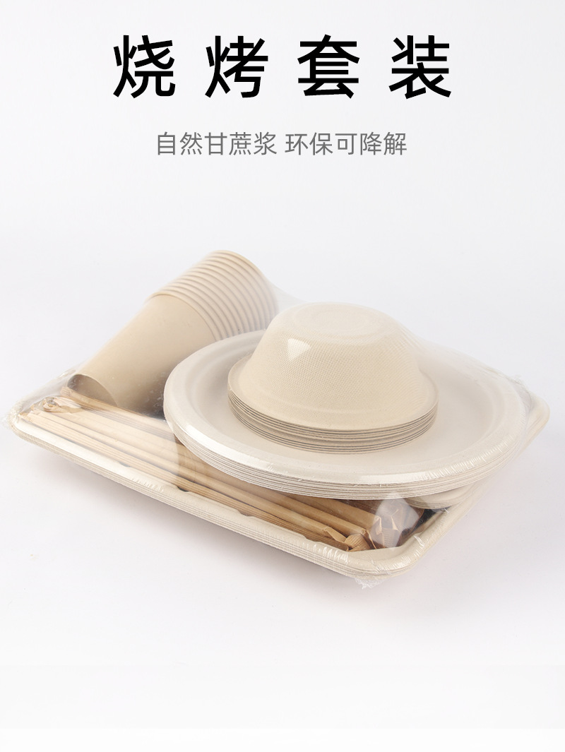 Desechable pulpa degradable plato palillos taza barbacoa plato picnic al aire libre plato de hueso Pulpa de caña de azúcar plato de fruta