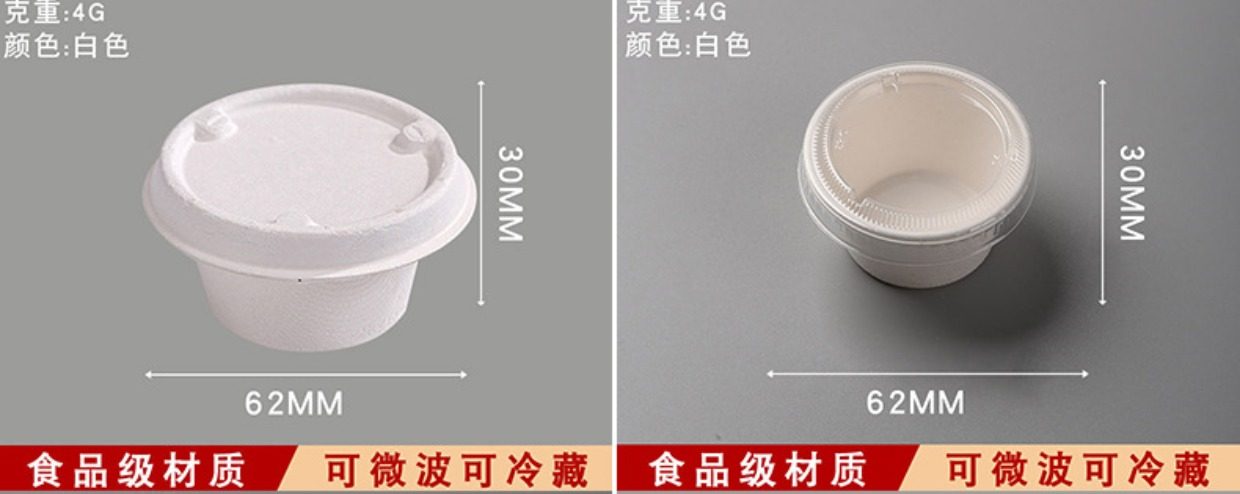 Taza de prueba de pulpa Taza de salsa Blanco 2 onzas Taza de papel pequeña desechable con tapa Salsa dulce Caja de chile Plato de salsa