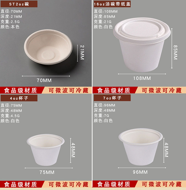 Taza de salsa 2oz (1000 juegos de tapa de pulpa natural)