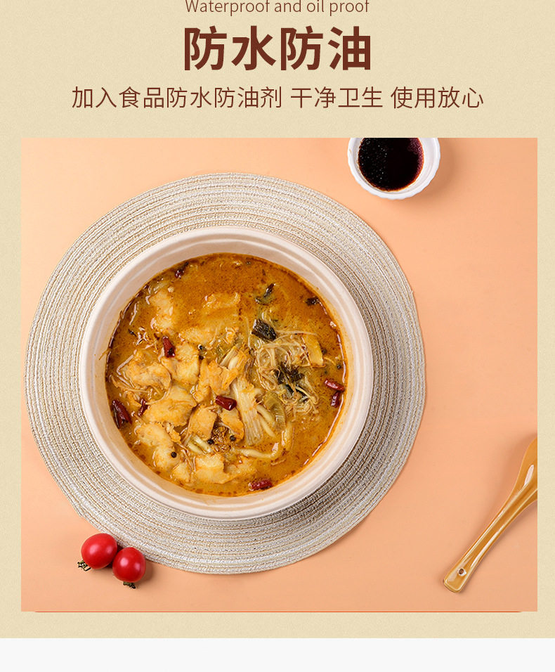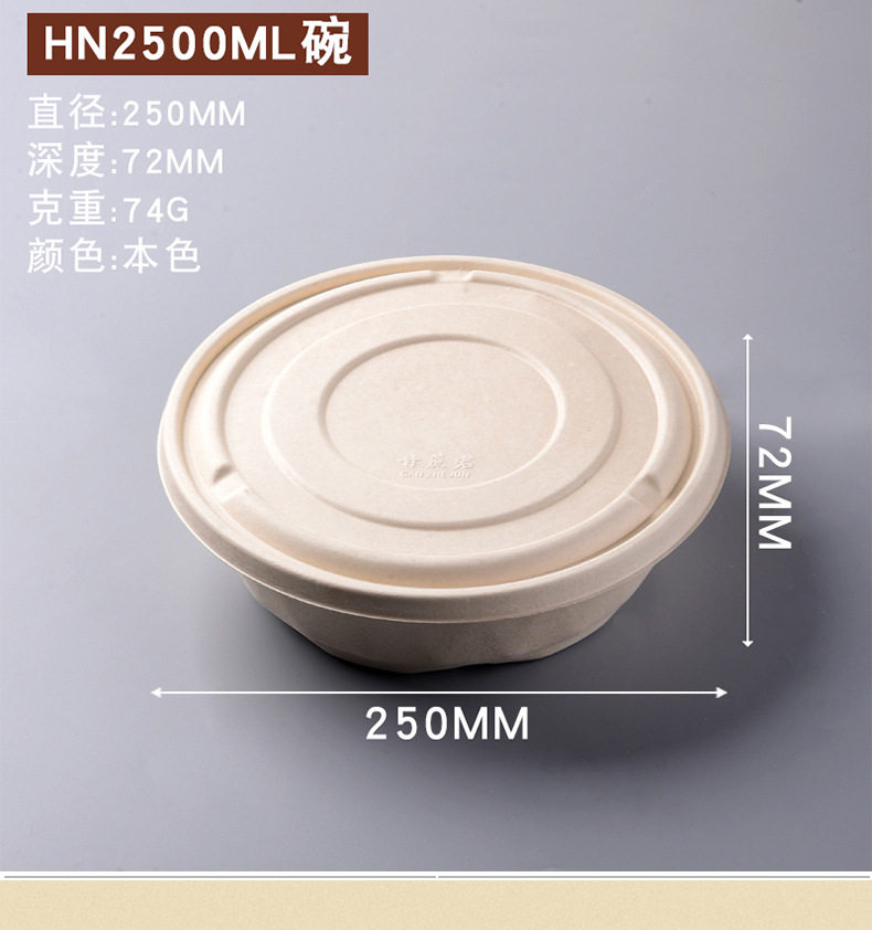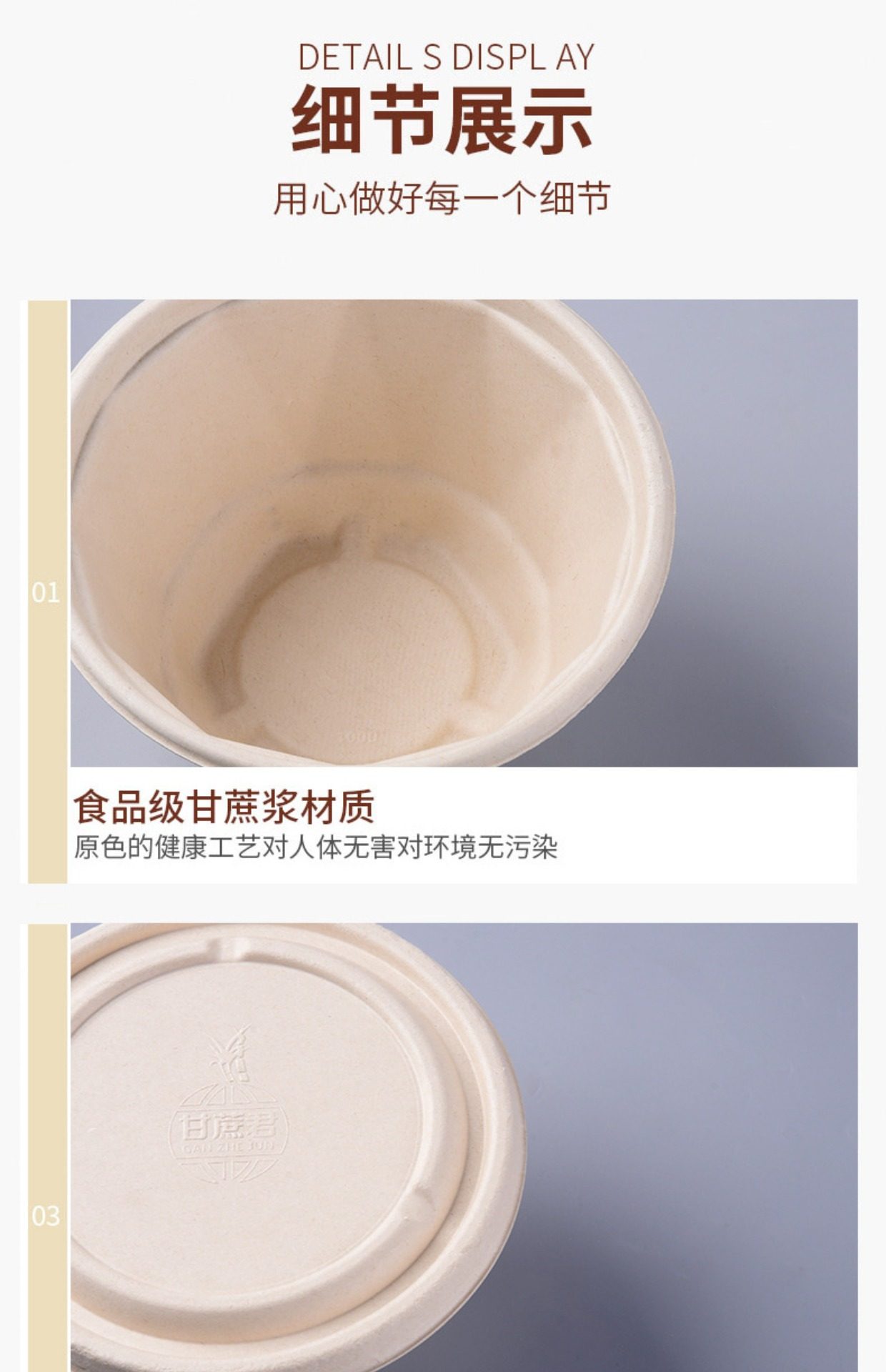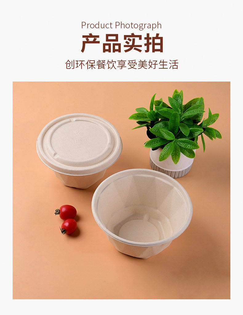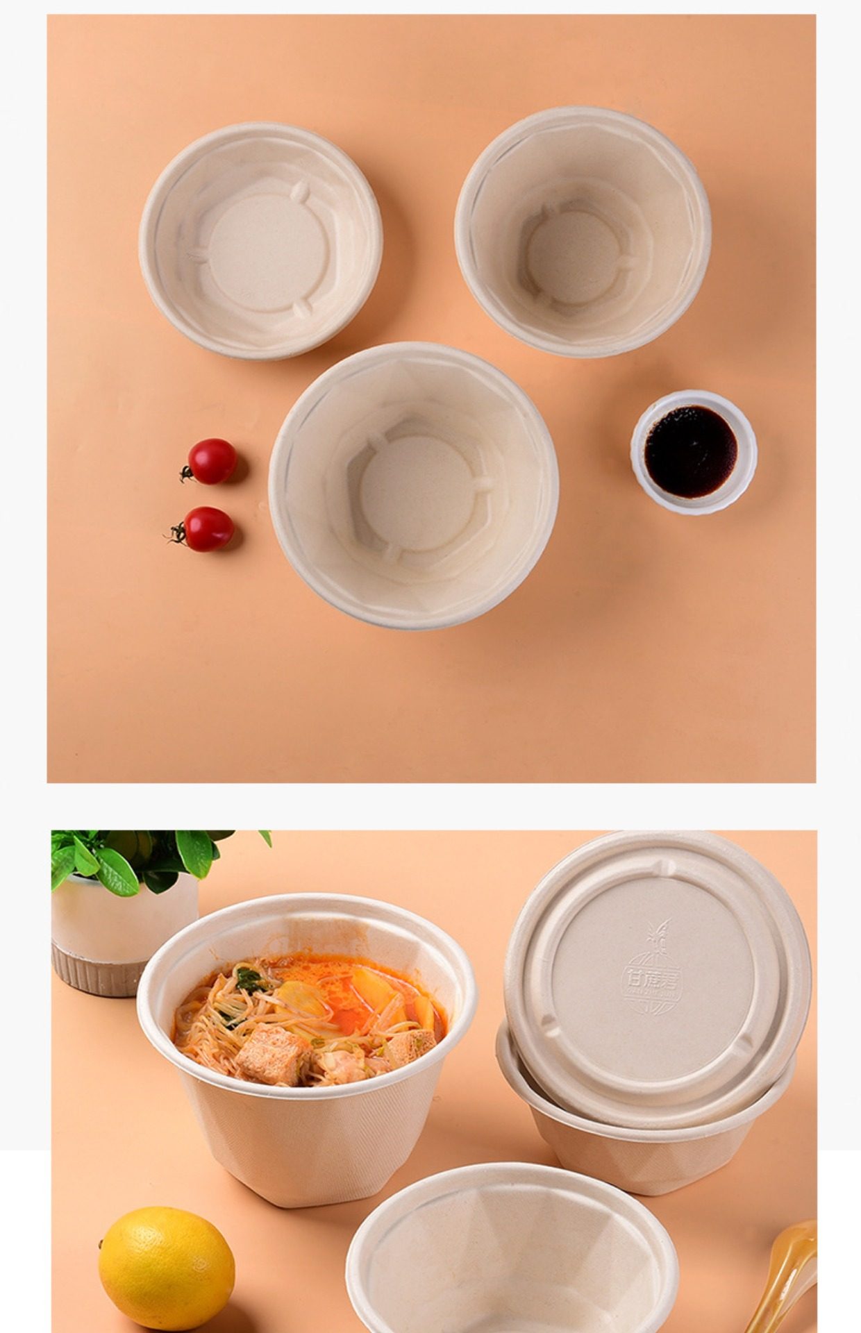 Pulpa de caña de azúcar degradable tazón de papel desechable tazón redondo arroz frito picante fideos fritos para llevar tazón de barbacoa
