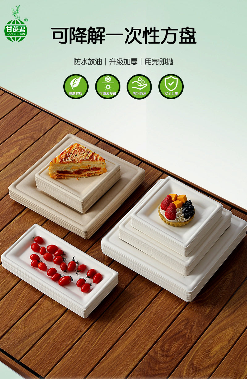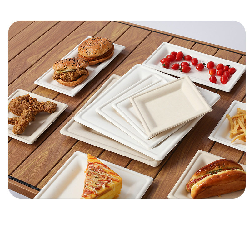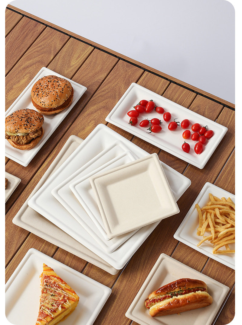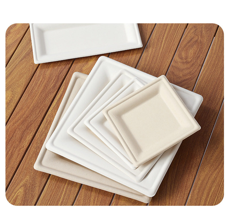 Plato de pulpa degradable Plato de papel cuadrado Picnic Plato de papel grueso Vajilla desechable Pintura Plato de barbacoa al aire libre hecho a mano
