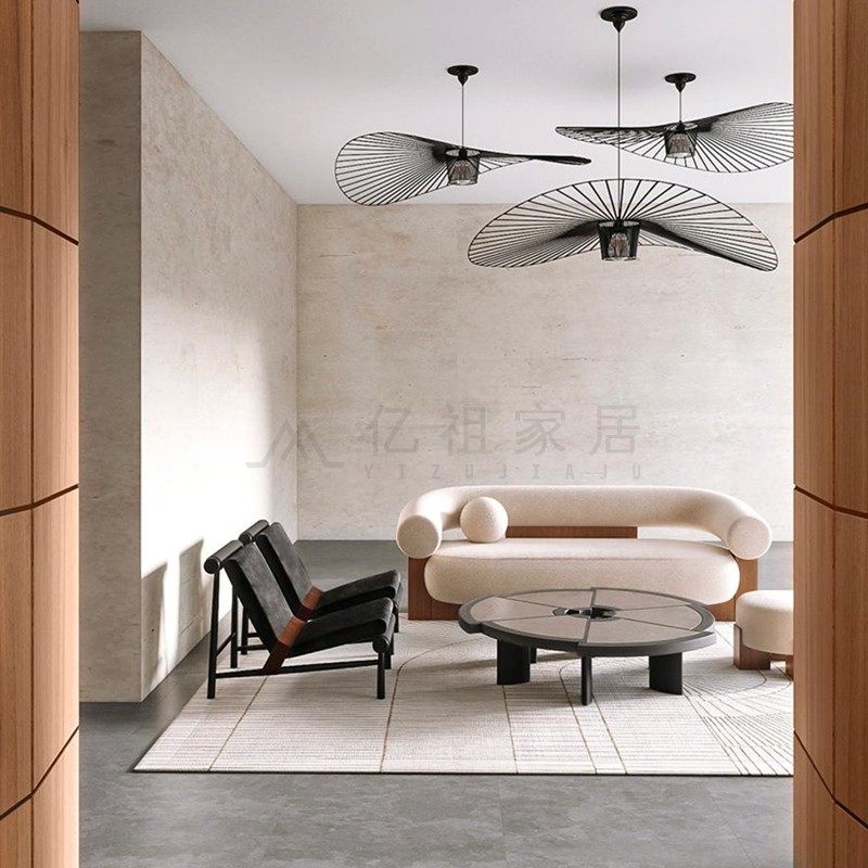 Nórdico simple sala de estar pequeña vivienda sofá de madera sólida sofá de diseño creativo doble de tres personas sofá curvo