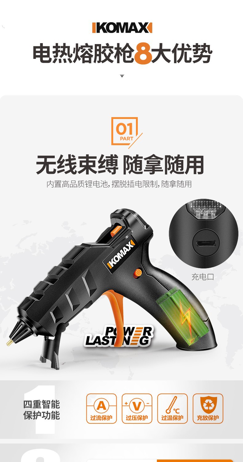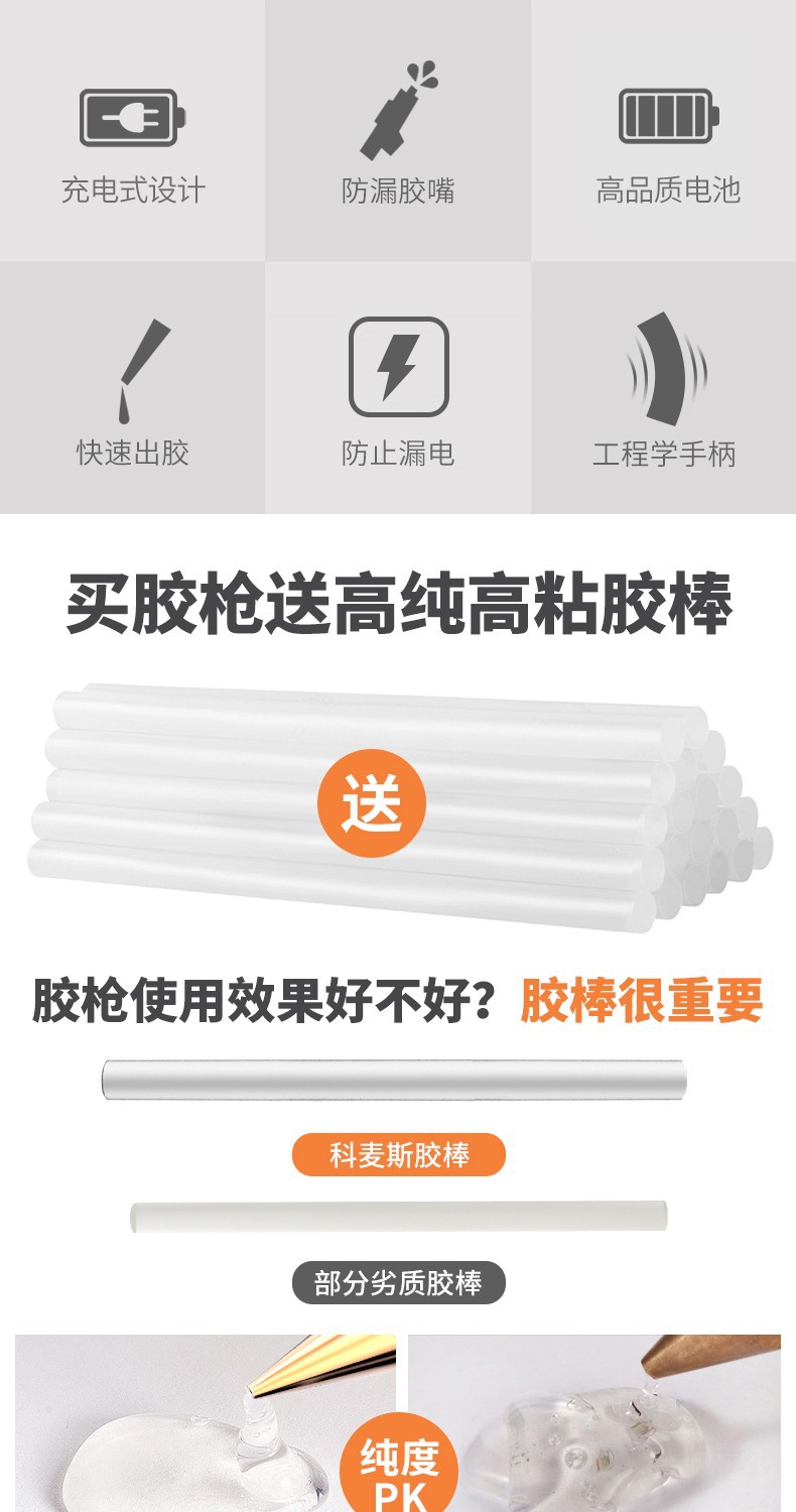 pistola de fusión en caliente eléctrica de litio inalámbrica carga pistola de pegamento en caliente casera hecha a mano pistola de fusión en caliente de alta viscosidad varilla adhesiva de fusión en caliente eléctrica