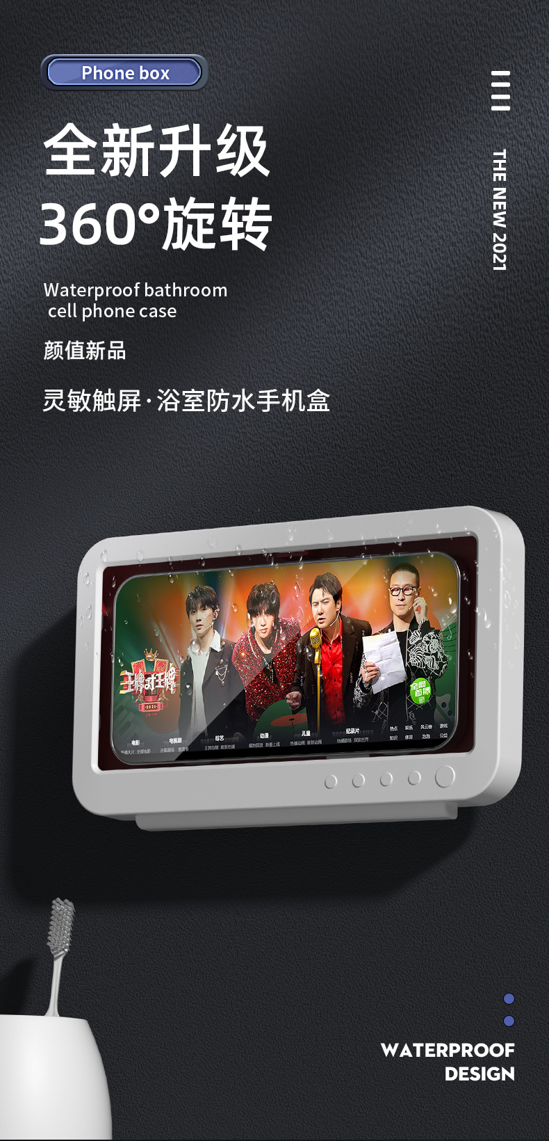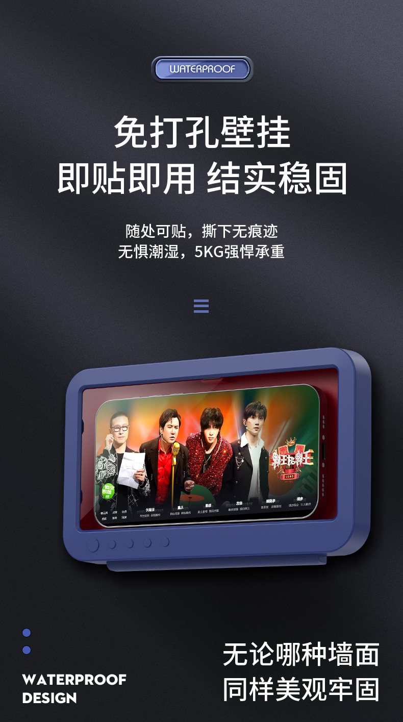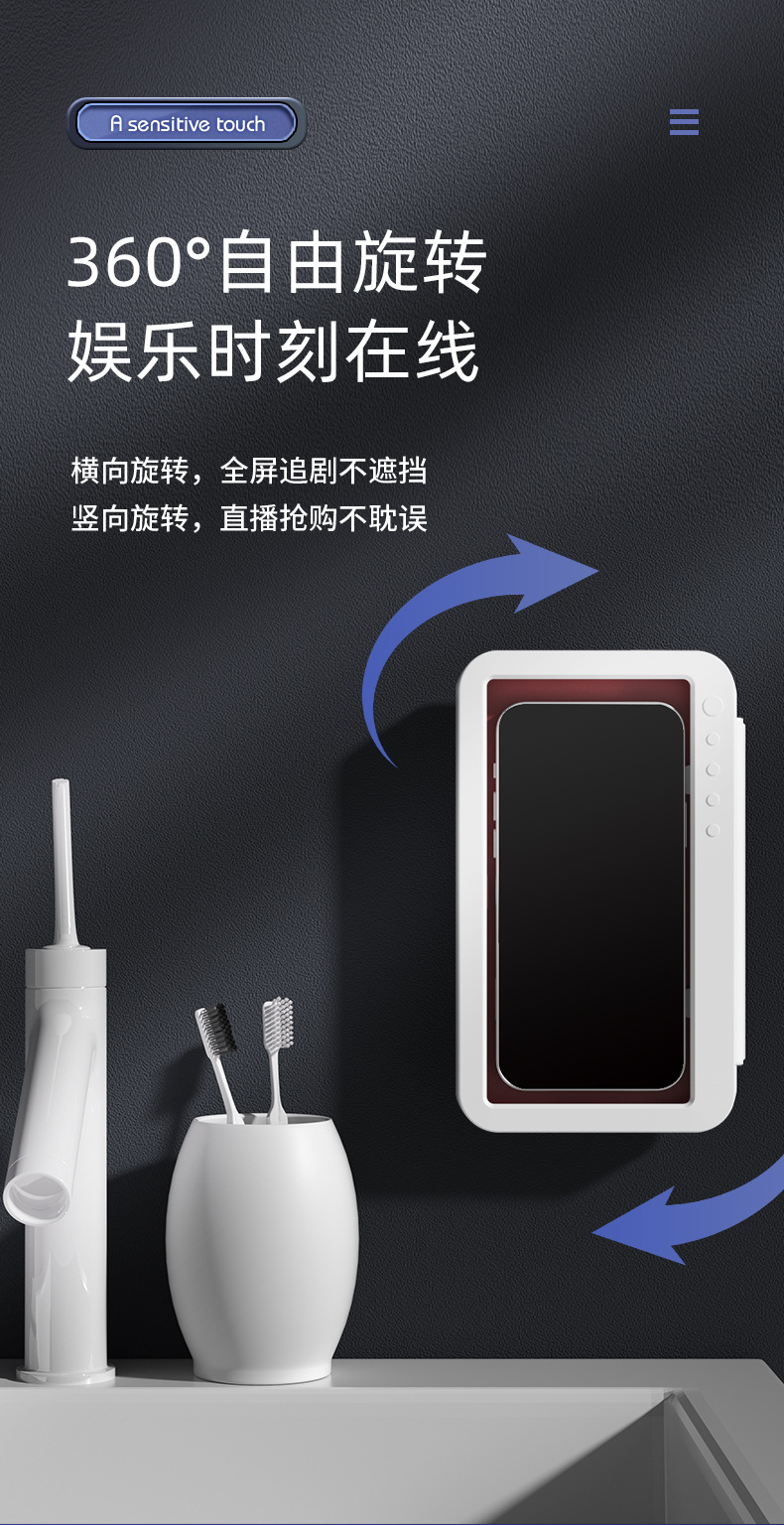 Baño impermeable caja de teléfono móvil 360 grados de rotación sin perforación baño artefacto de juego pantalla táctil soporte de teléfono móvil estante de almacenamiento