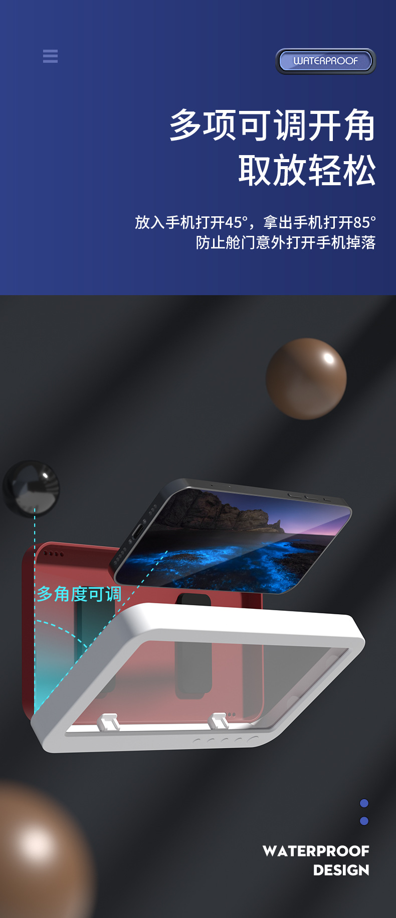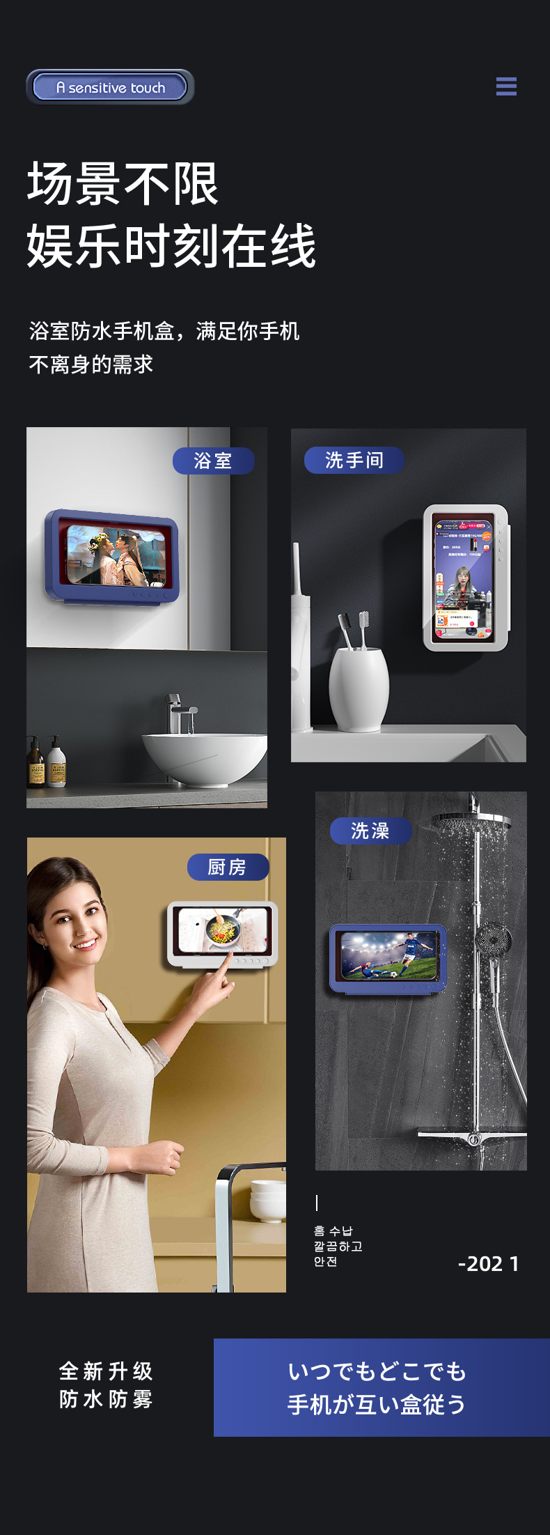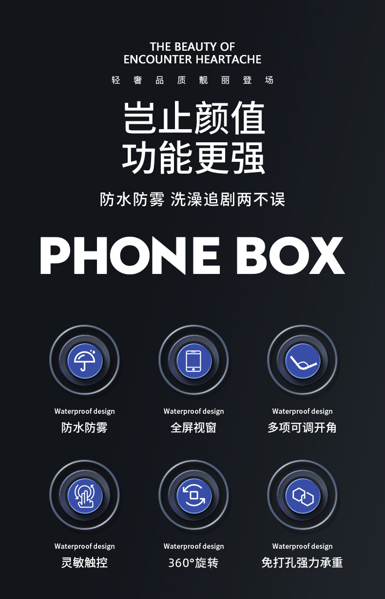 Baño impermeable caja de teléfono móvil 360 grados de rotación sin perforación baño artefacto de juego pantalla táctil soporte de teléfono móvil estante de almacenamiento