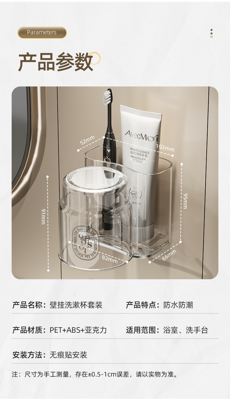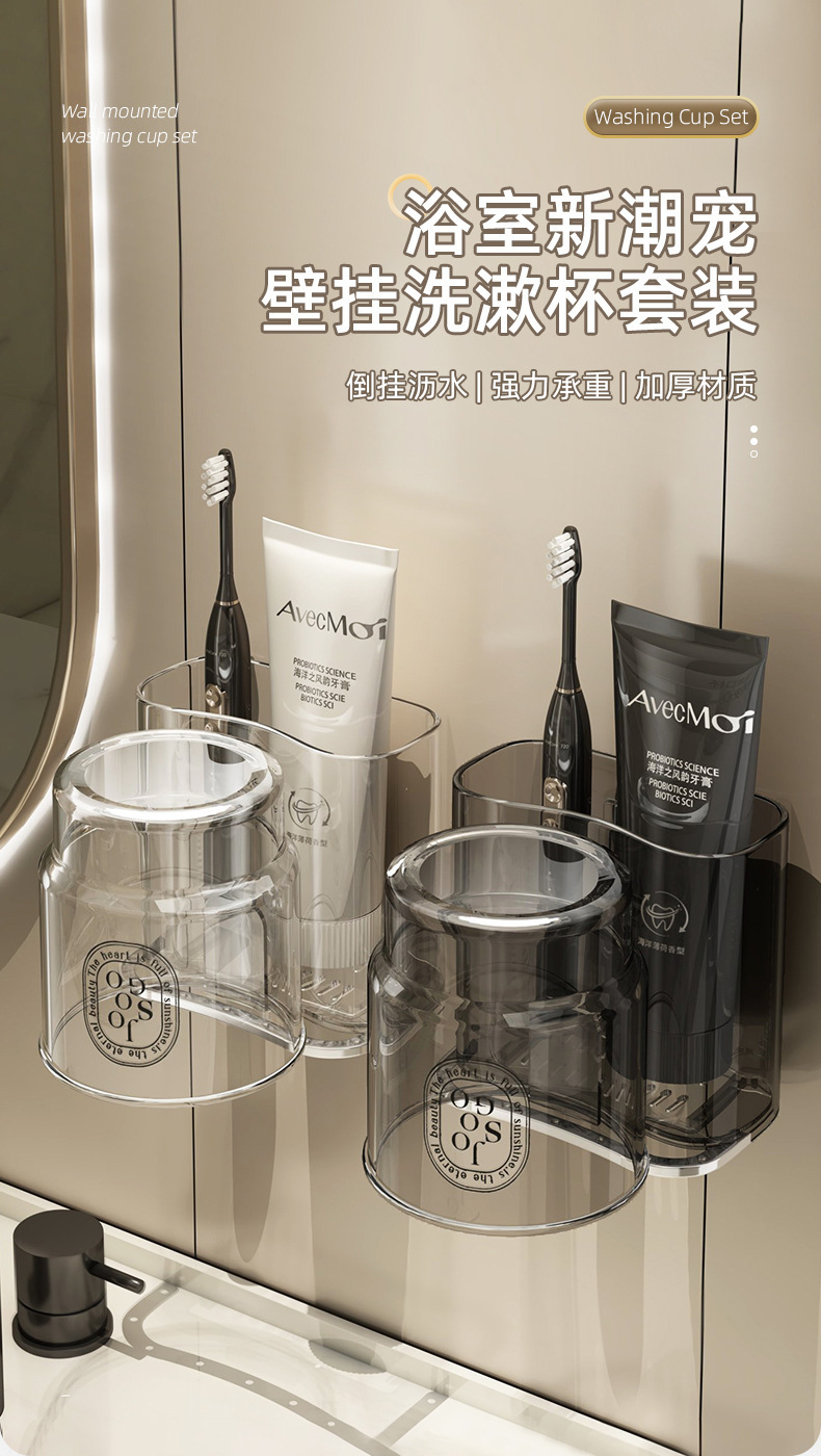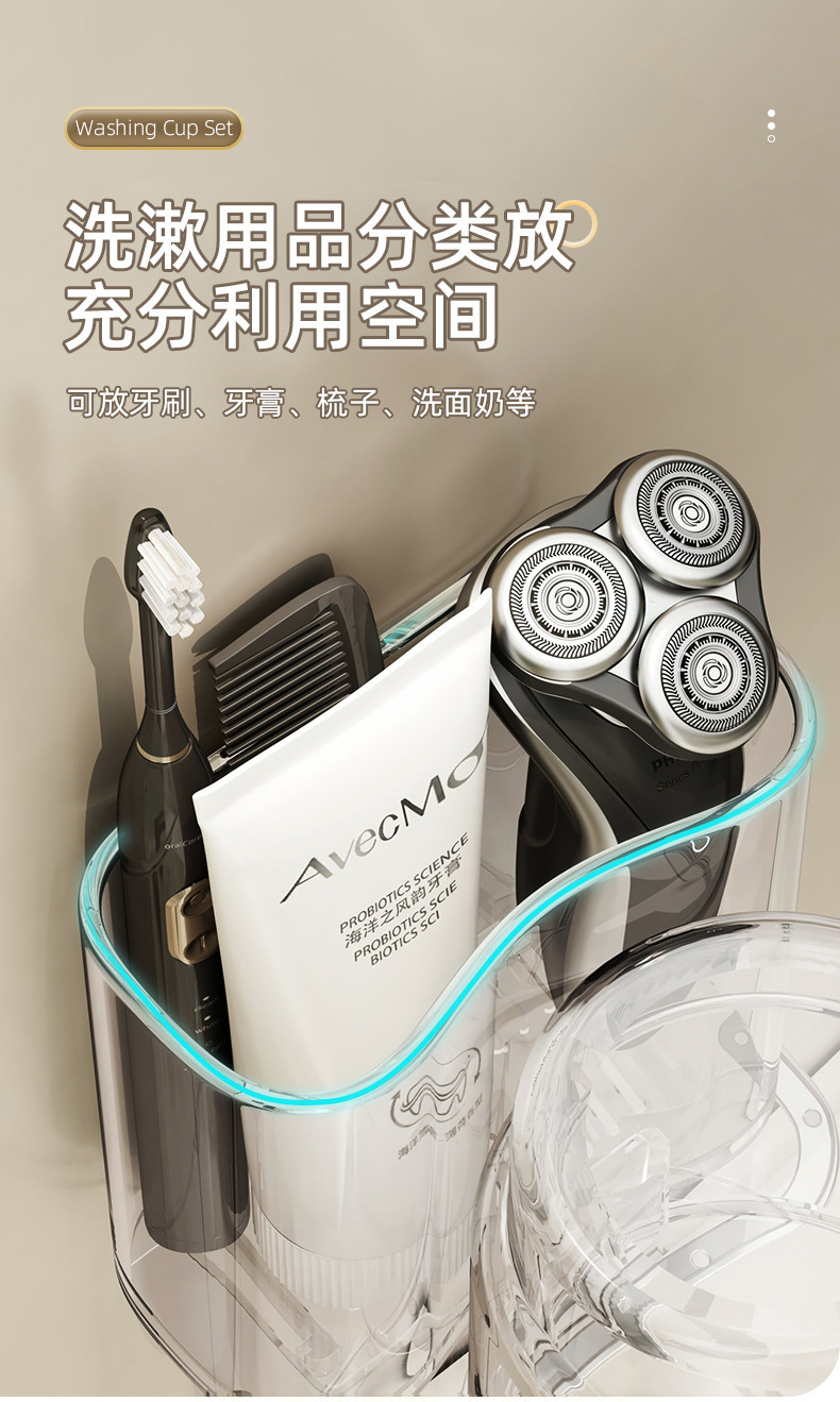 Soporte de cepillo de dientes, soporte de almacenamiento de dientes, taza de boca, soporte de cepillo de dientes eléctrico para parejas, conjunto de pasta de dientes de lujo ligero montado en la pared