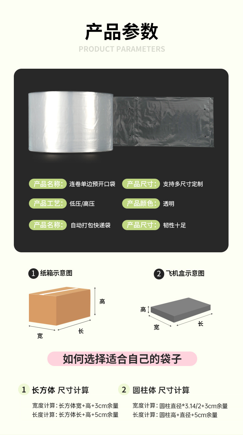 Bolsa de entrega transparente bolsa de enrollamiento continuo embalaje bolsillo preabierto unilateral bolsa de embalaje logística bolsa de embalaje impermeable sellado