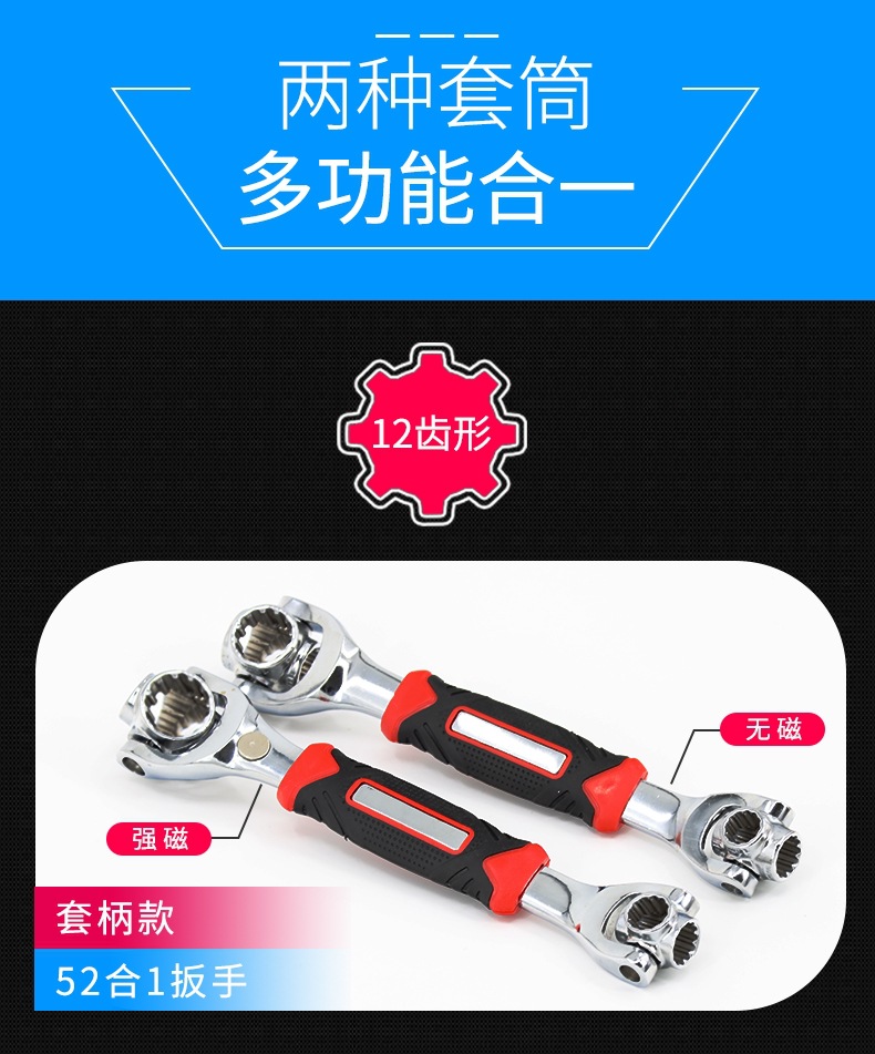 Llave multipropósito doméstica 52 en uno conjunto de llave de manguito multifuncional 8 en 10 llave giratoria de cabeza múltiple
