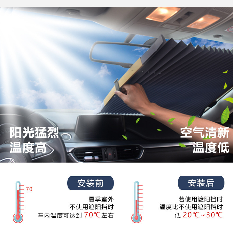 Parasol para automóvil, protección solar y aislamiento térmico en el automóvil, cortina telescópica automática, panel de luz frontal, parasol de ventana