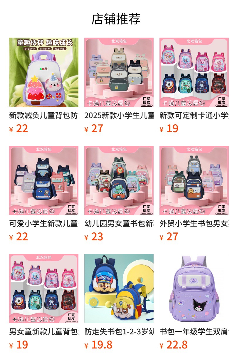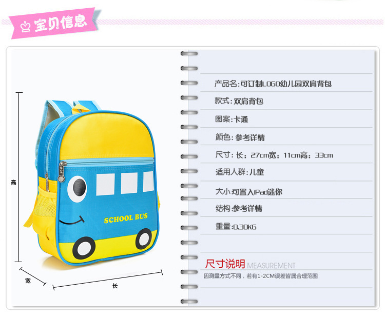 Kindergarten mochila dibujos animados niños lindos mochila multi-estilo estudiante mochila imprimible logo fábrica al por mayor