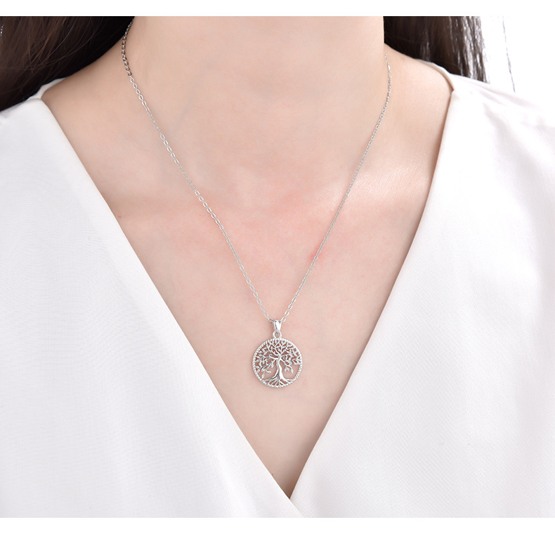925 plata esterlina hueco colgante árbol de la vida nicho femenino europeo de alto nivel de sentimiento de la cadena clavicular del árbol de la paz suéter