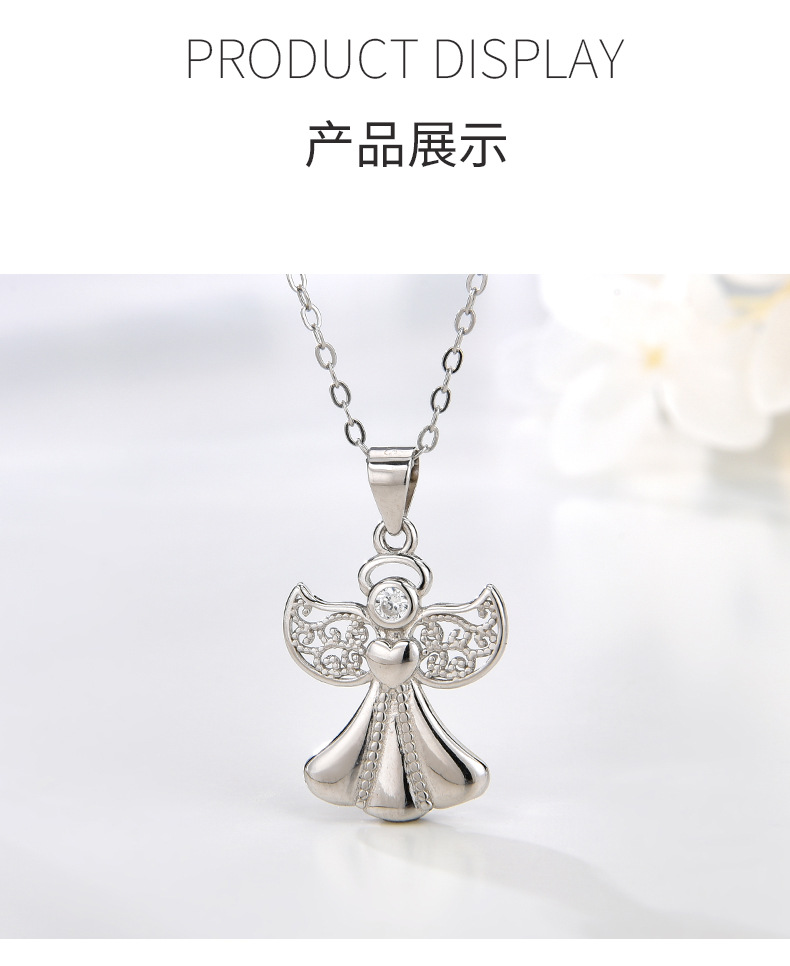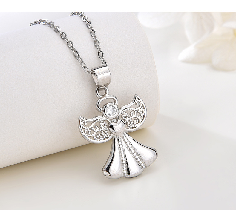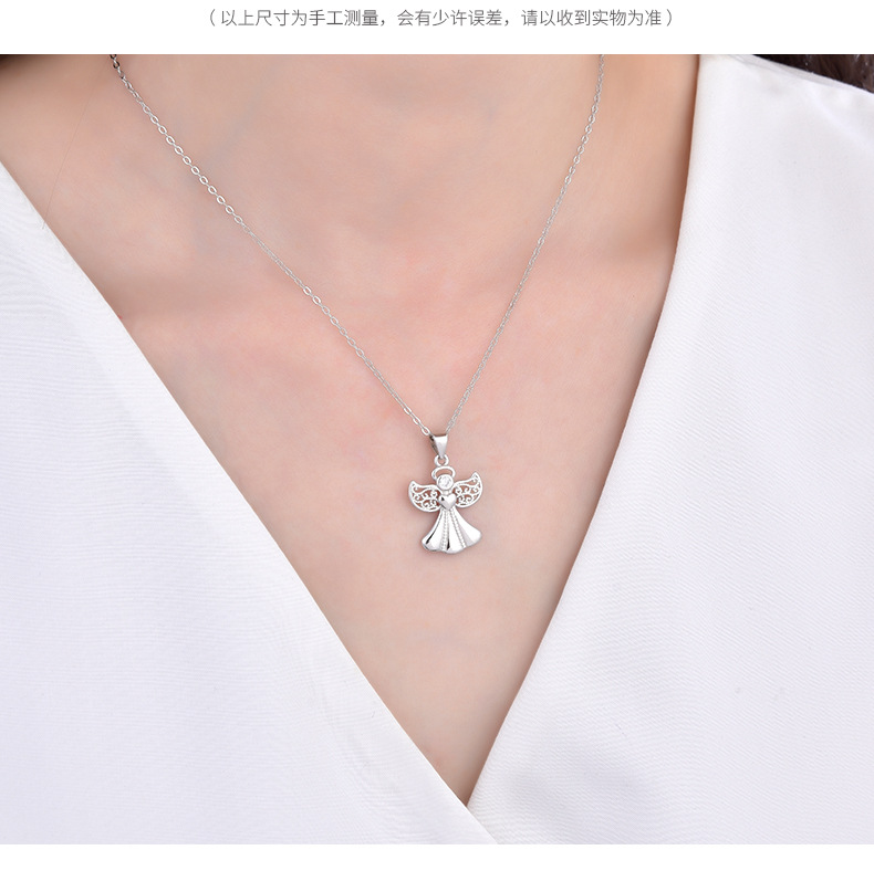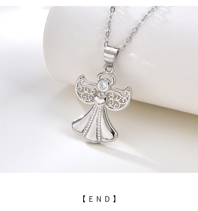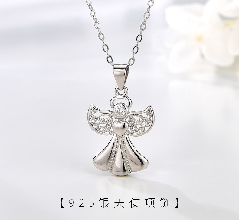 Joyas de Amazon transfronterizas Collar de ángel de plata de ley 925 Moda femenina Estilo europeo y americano Colgante de circón con incrustaciones Cadena de clavícula
