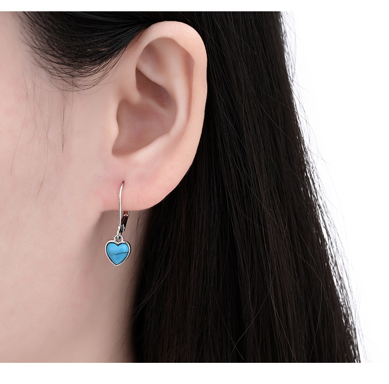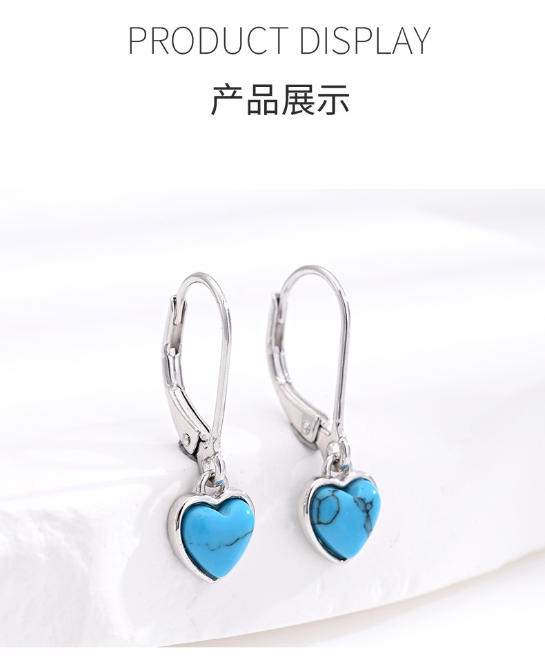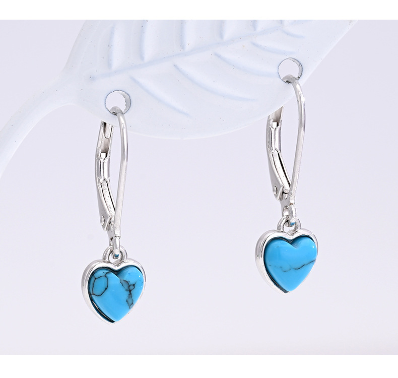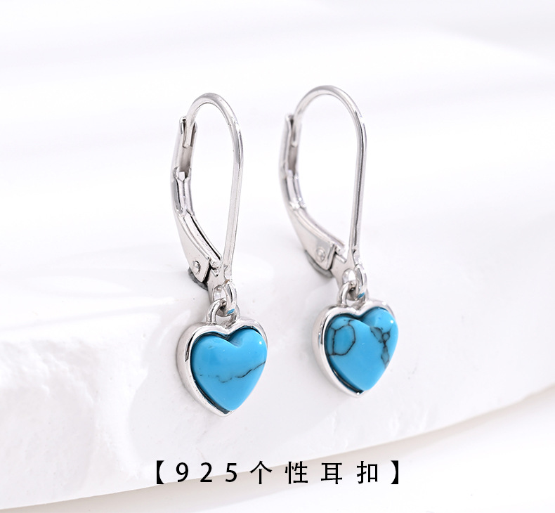 Explosiones transfronterizas 925 plata esterlina pendientes turquesa mujeres europeas y americanas pendientes de amor retro bohemia pendientes