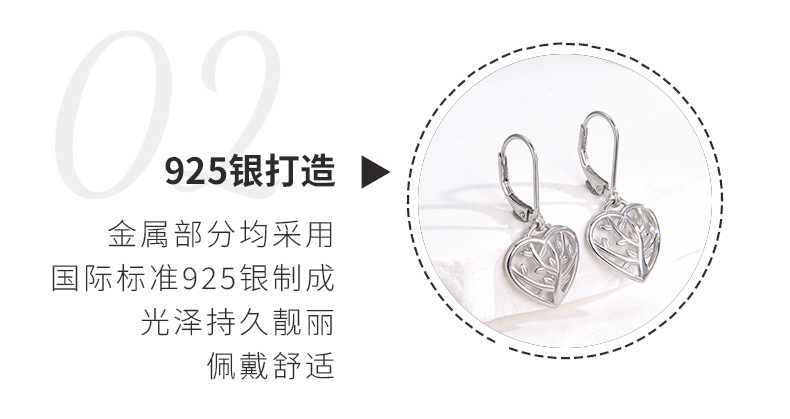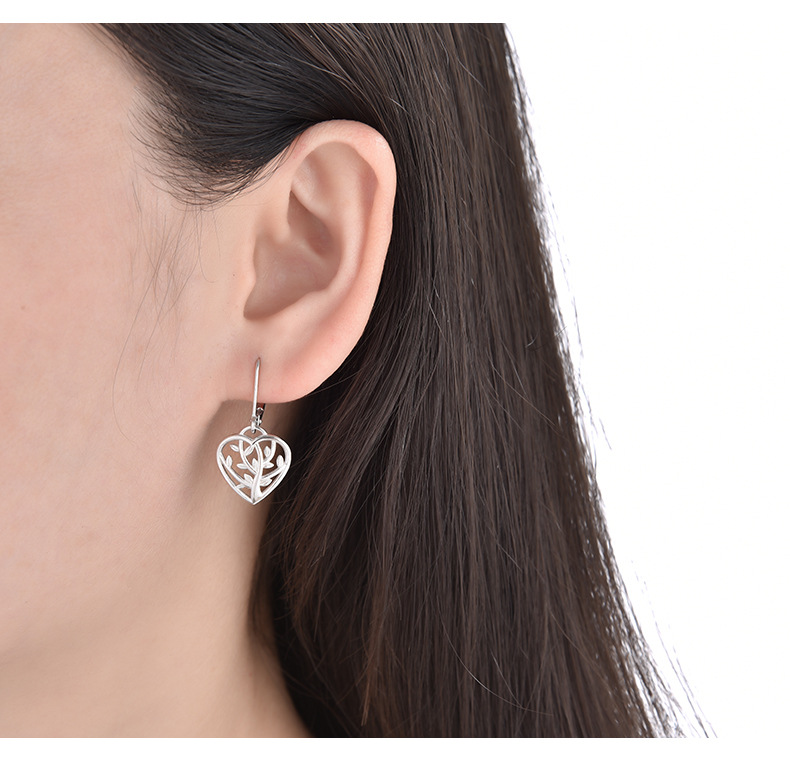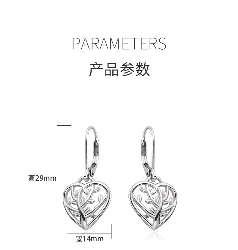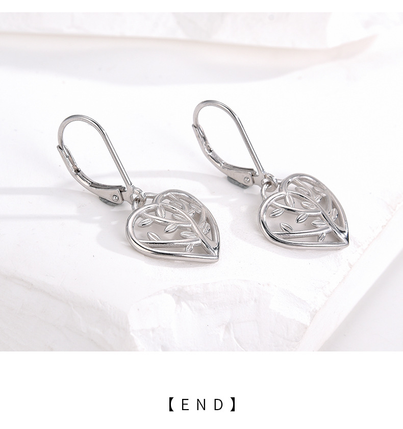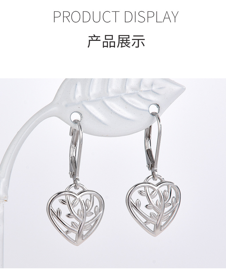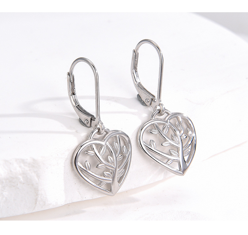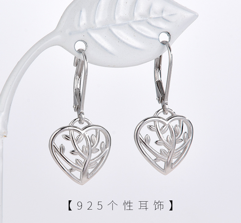 Amazon transfronterizo plata esterlina 925 aretes de árbol de vida hojas de corazón estilo francés pendientes de moda europeos y estadounidenses pendientes de comercio exterior