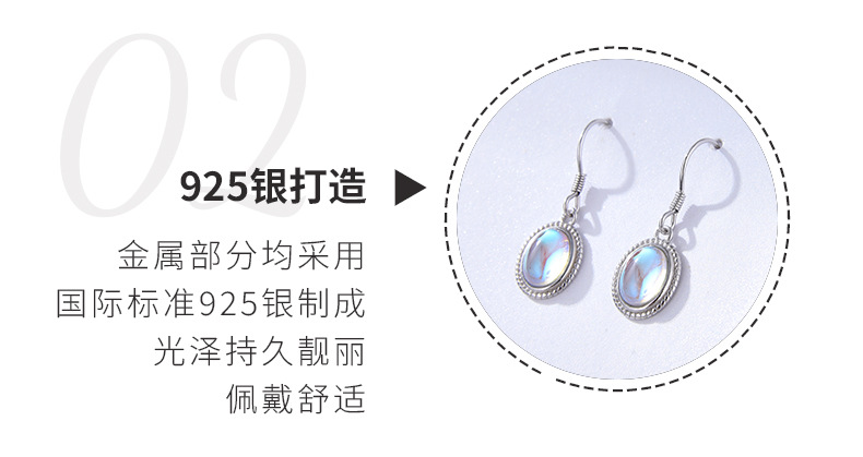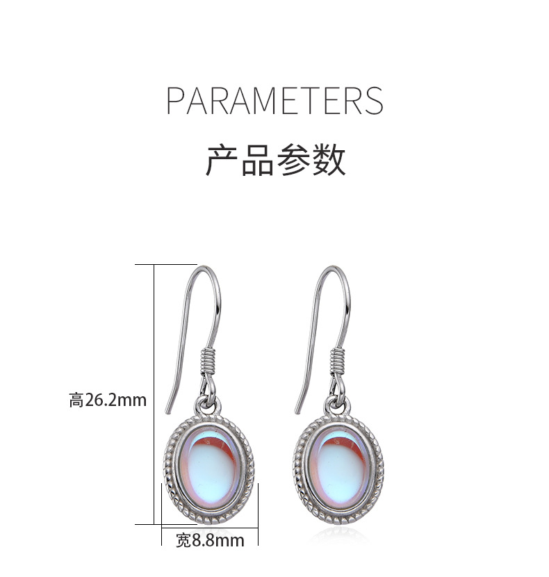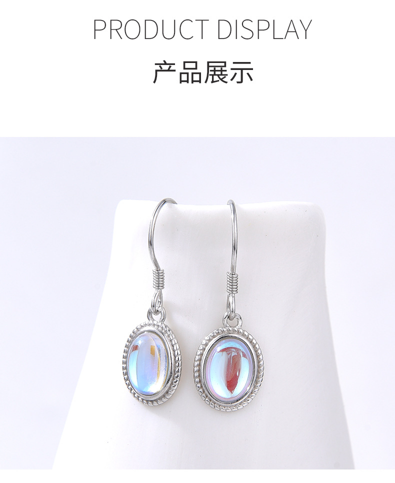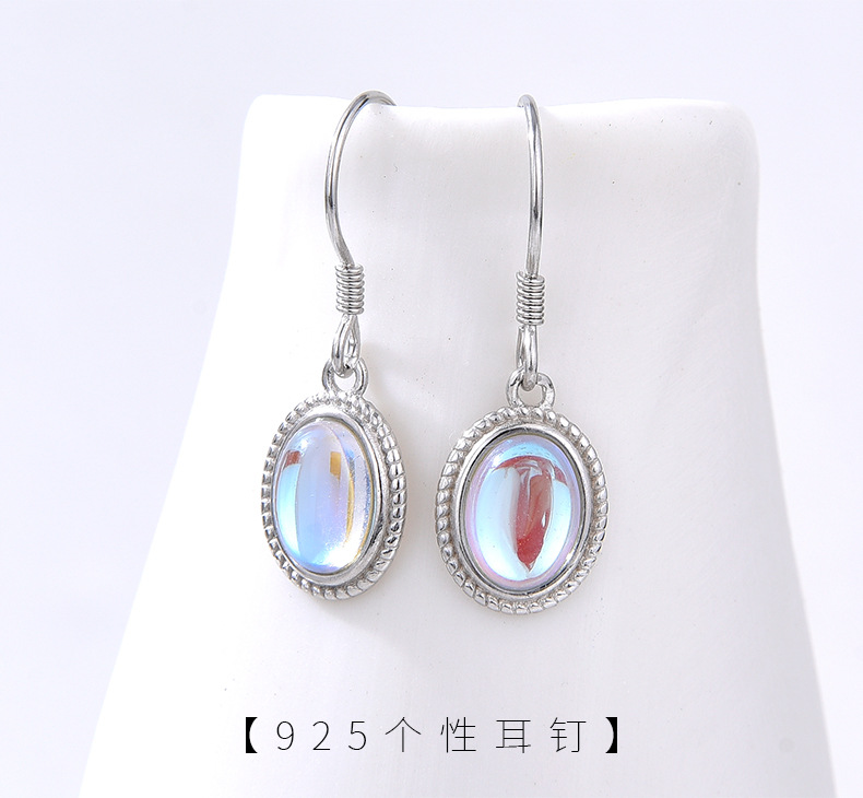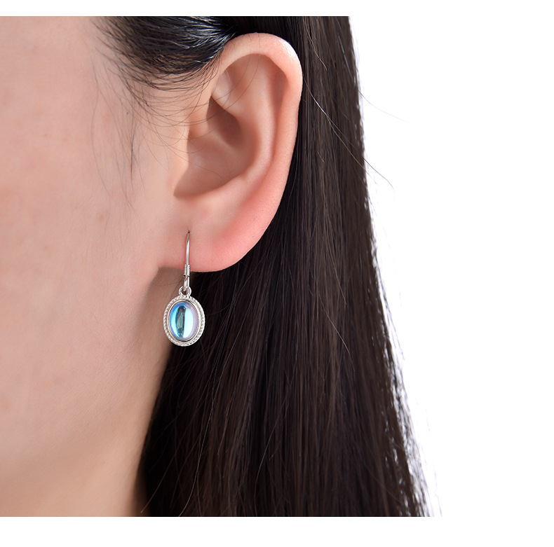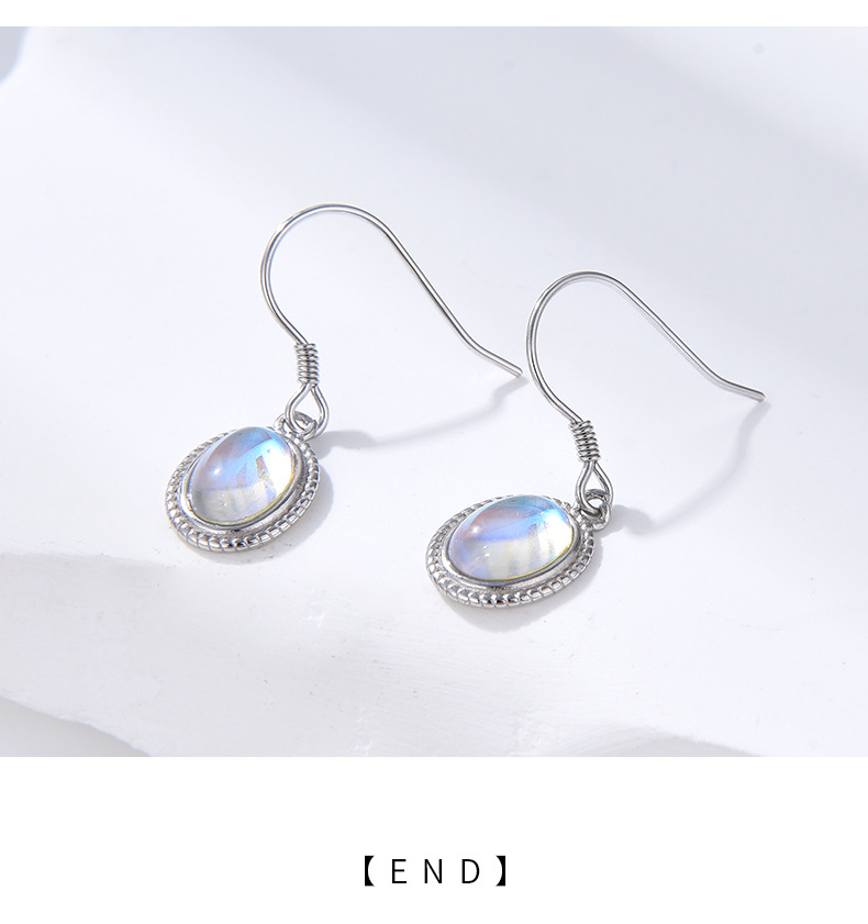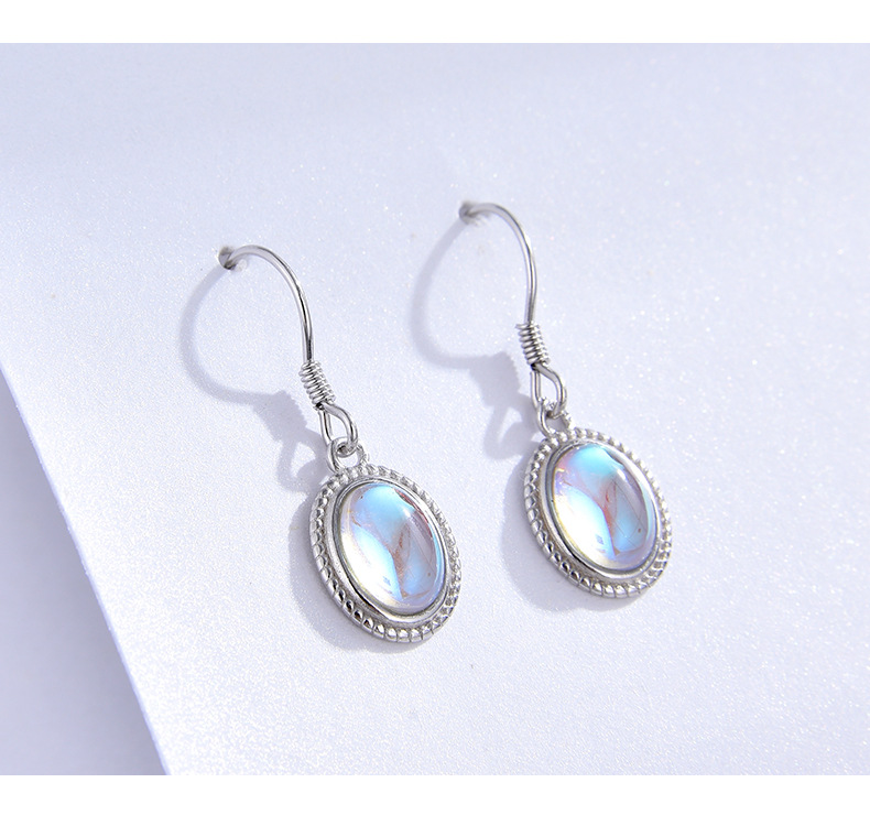 Transfronterizo Amazon nuevos pendientes de piedra lunar ovalados de plata de ley 925 pendientes de diseño de nicho femenino pendientes simples