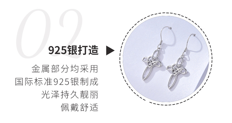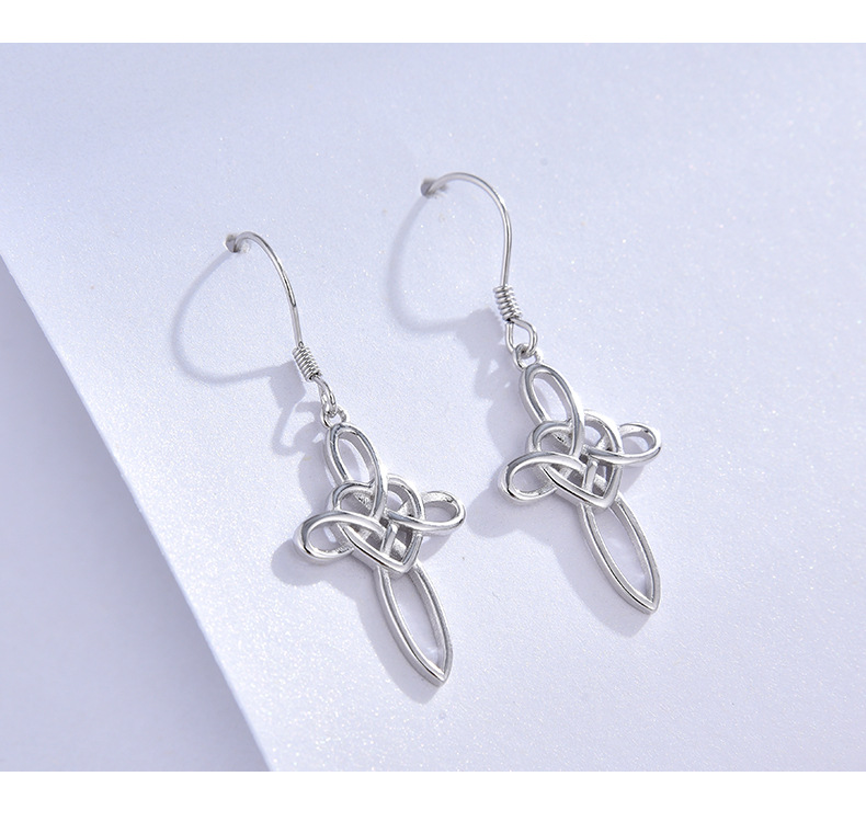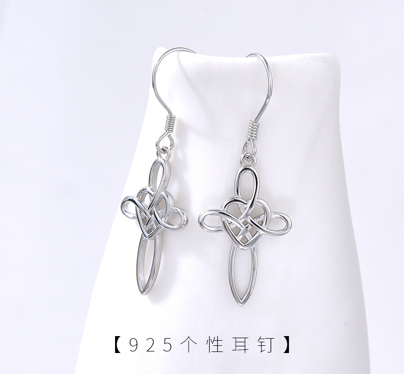 Comercio exterior transfronterizo nuevo estilo 925 plata de ley celta nudo cruz pendientes mujer moda europea y americana pendientes de alta gama