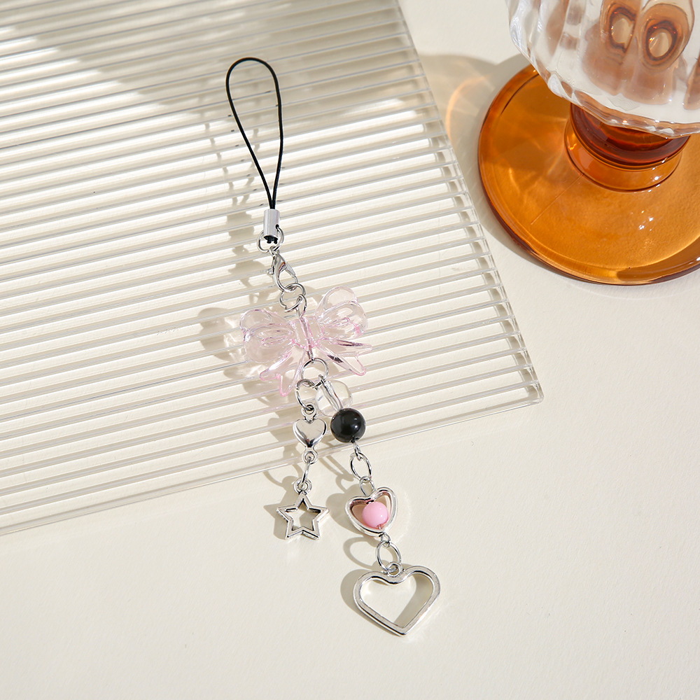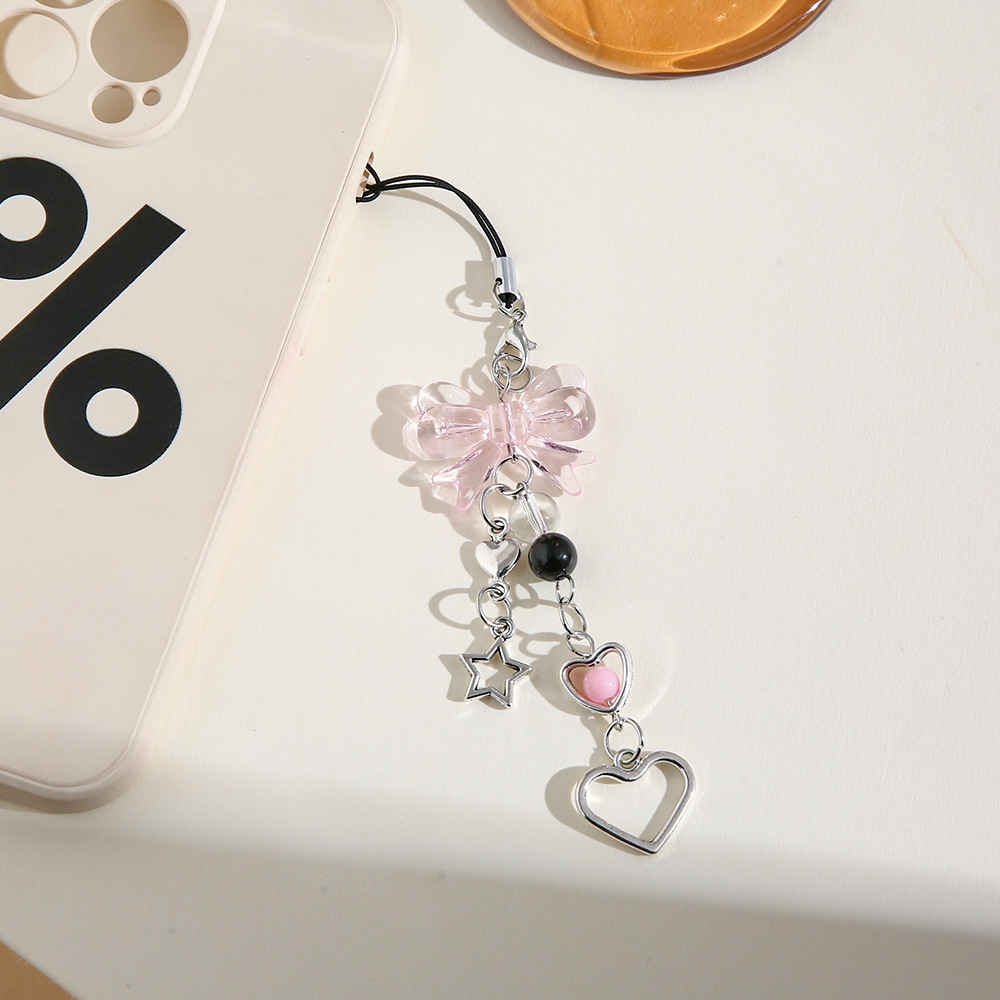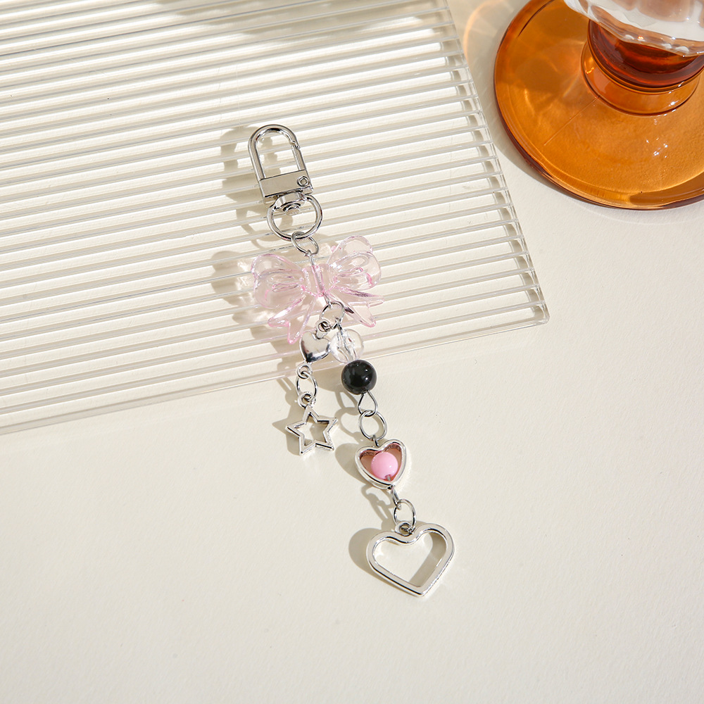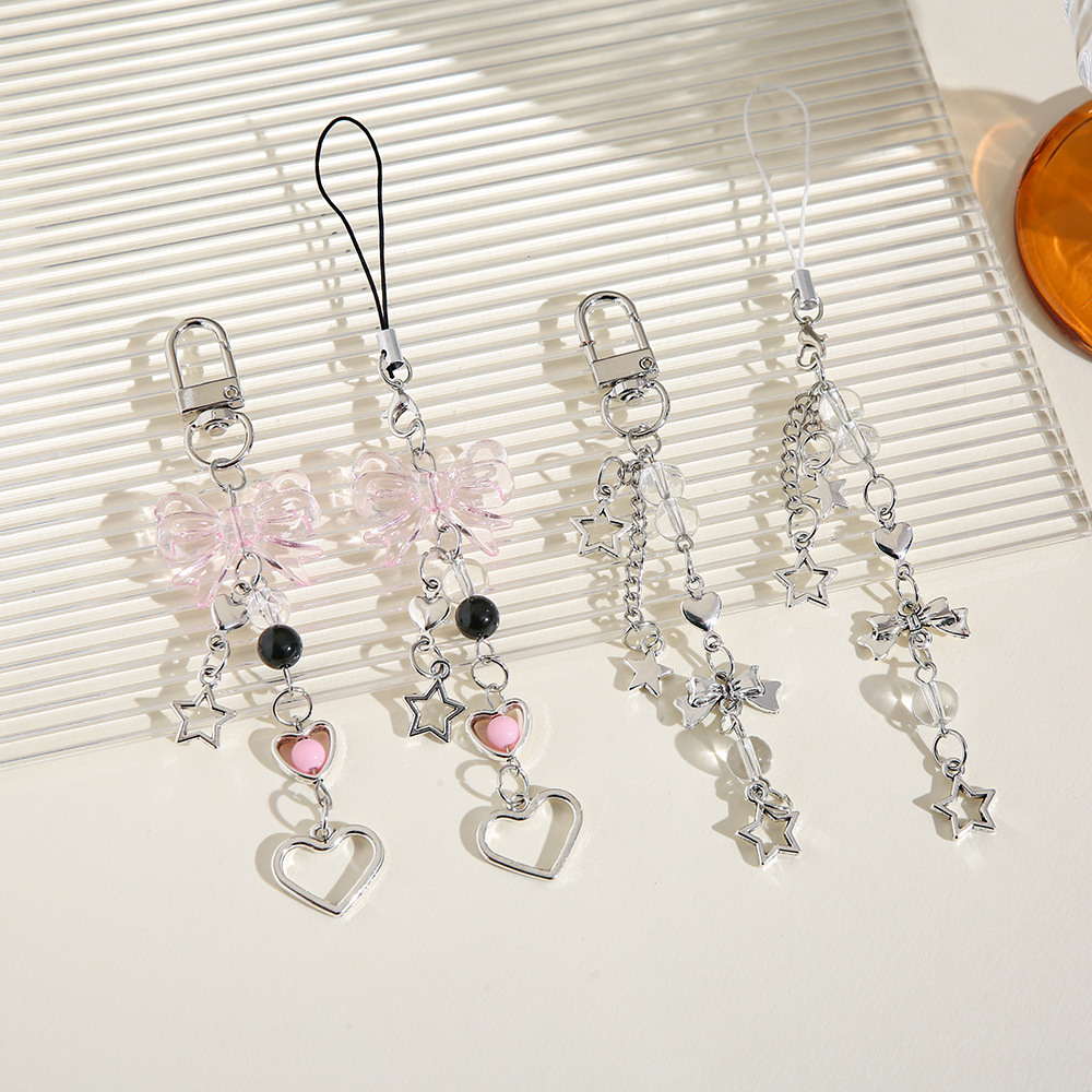 Nuevo estilo dulce Yafeng lazo llavero colgante creativo teléfono móvil cadena corta amor estrella de cinco puntas bolso decoración borla