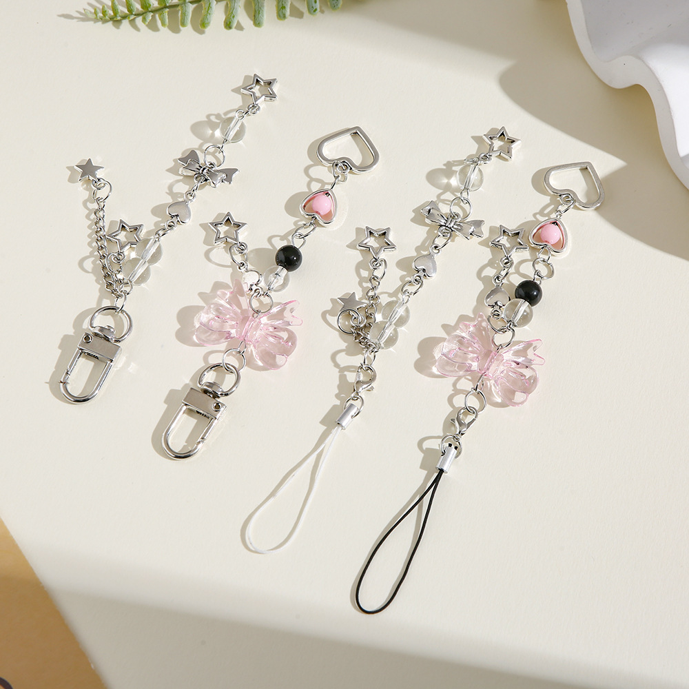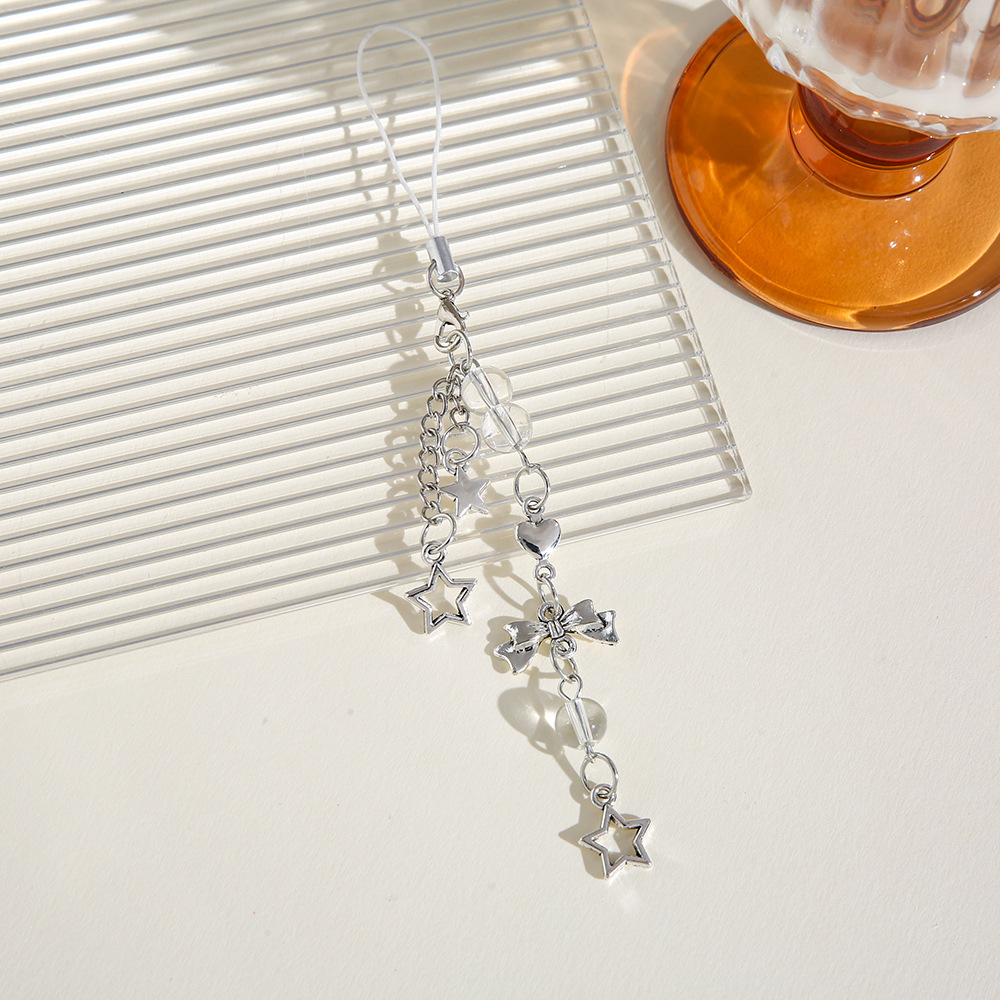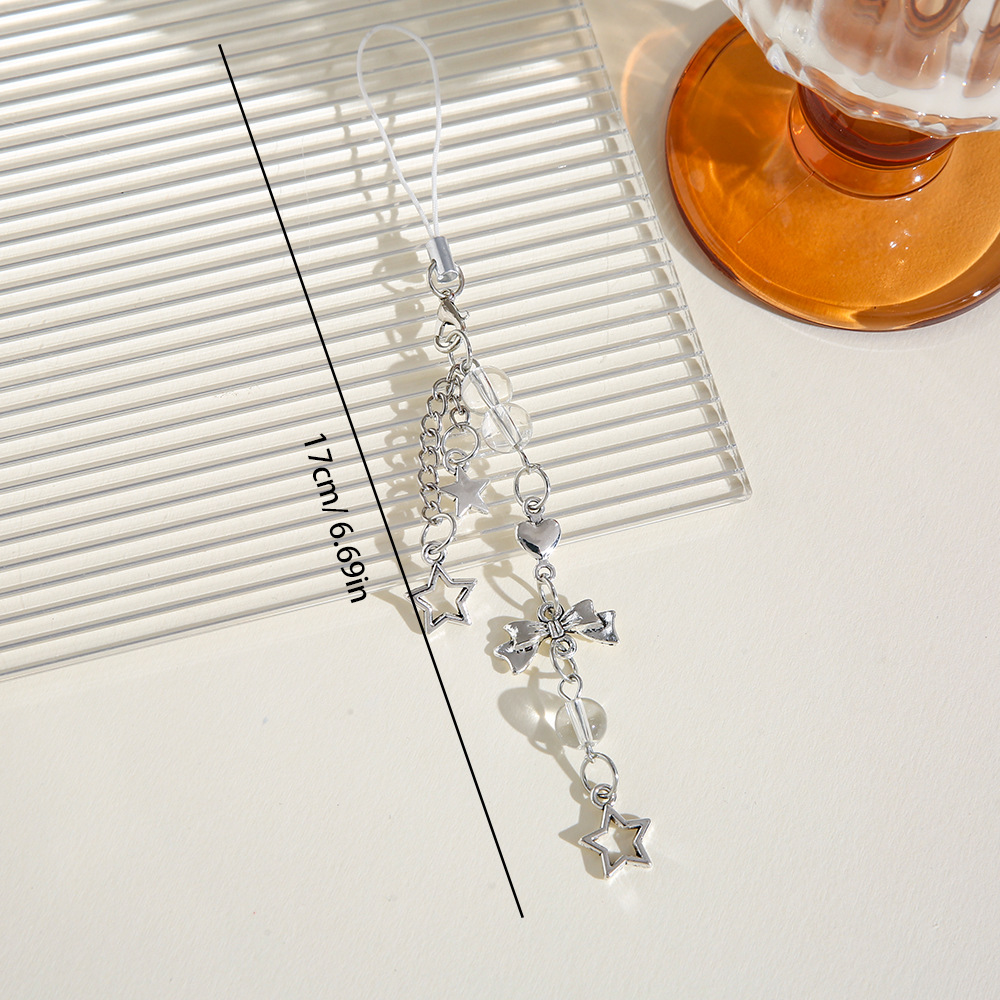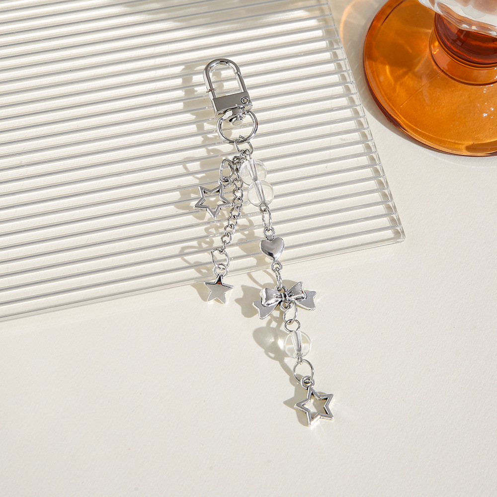 Nuevo estilo dulce Yafeng lazo llavero colgante creativo teléfono móvil cadena corta amor estrella de cinco puntas bolso decoración borla