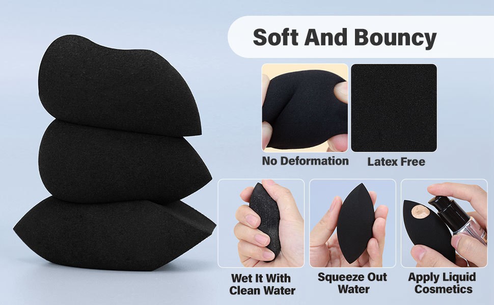 Huevo de maquillaje de belleza, soplo de maquillaje, negro clásico, variedad de formas, maquillaje de forma especial, huevo, herramienta de goteo de corte oblicuo sin látex
