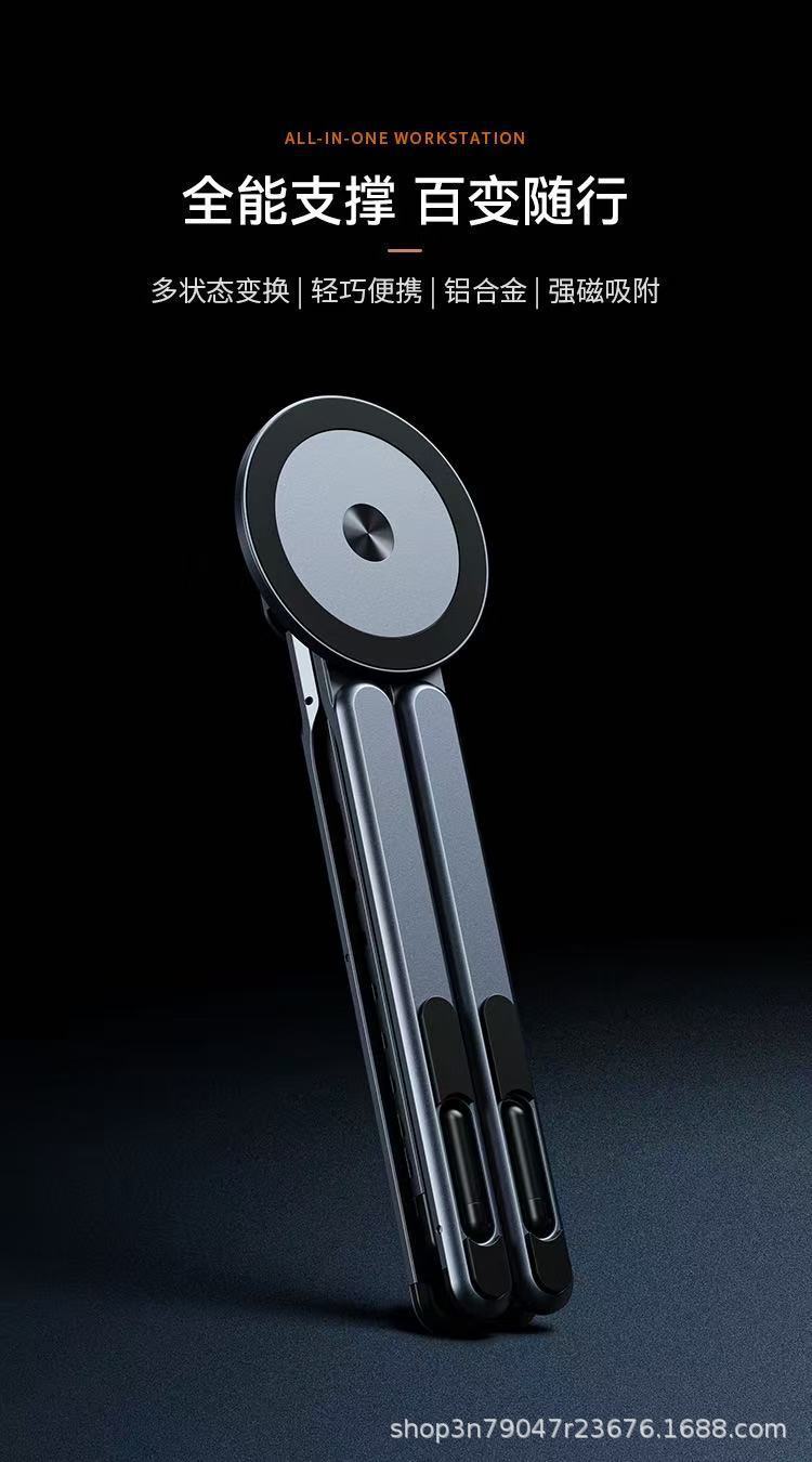 3 - en - 1 metal fuerte succión magnética soporte de teléfono móvil portátil soporte de tableta portátil soporte de viaje plegable