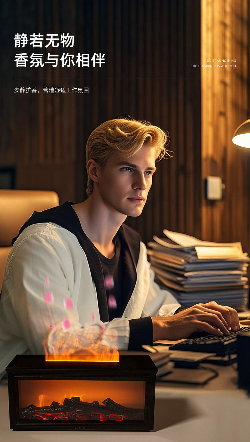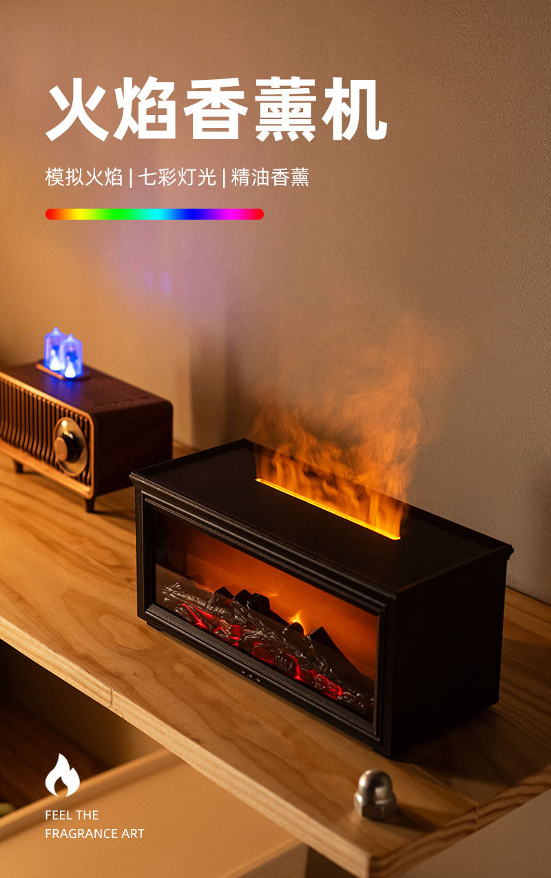Venta en caliente transfronteriza máquina de fragrancia de llama retro 3D estereoscópica tipo chimenea de llama atomización ultrasónica colorida atmósfera máquina de fragrancia