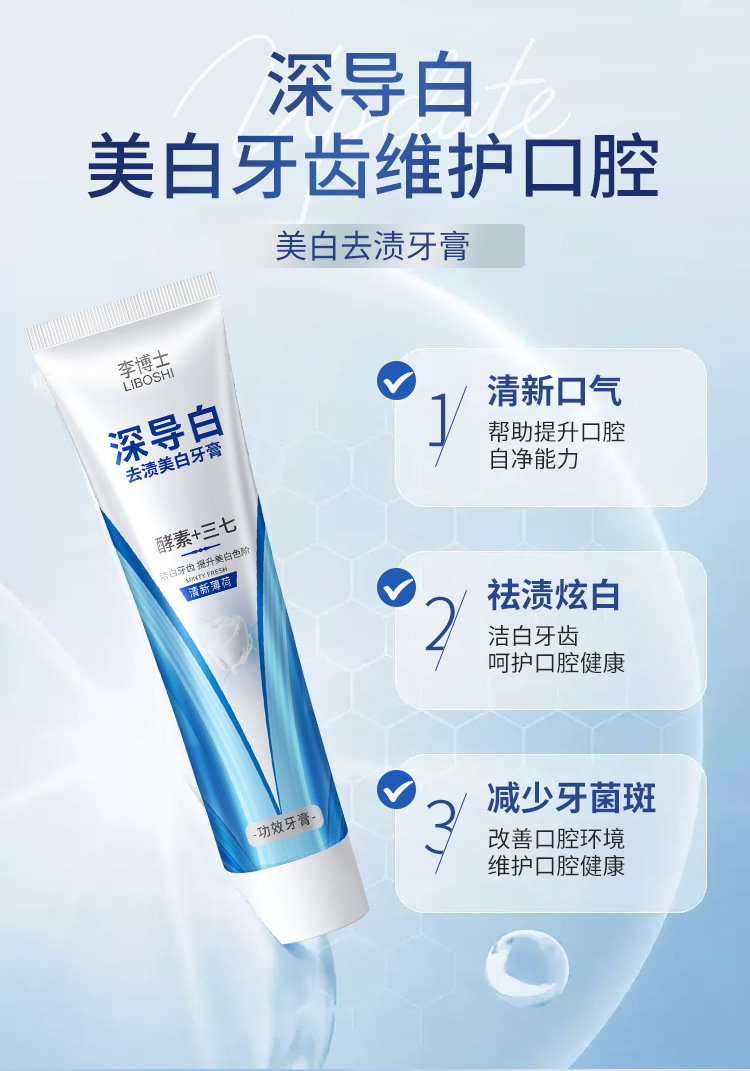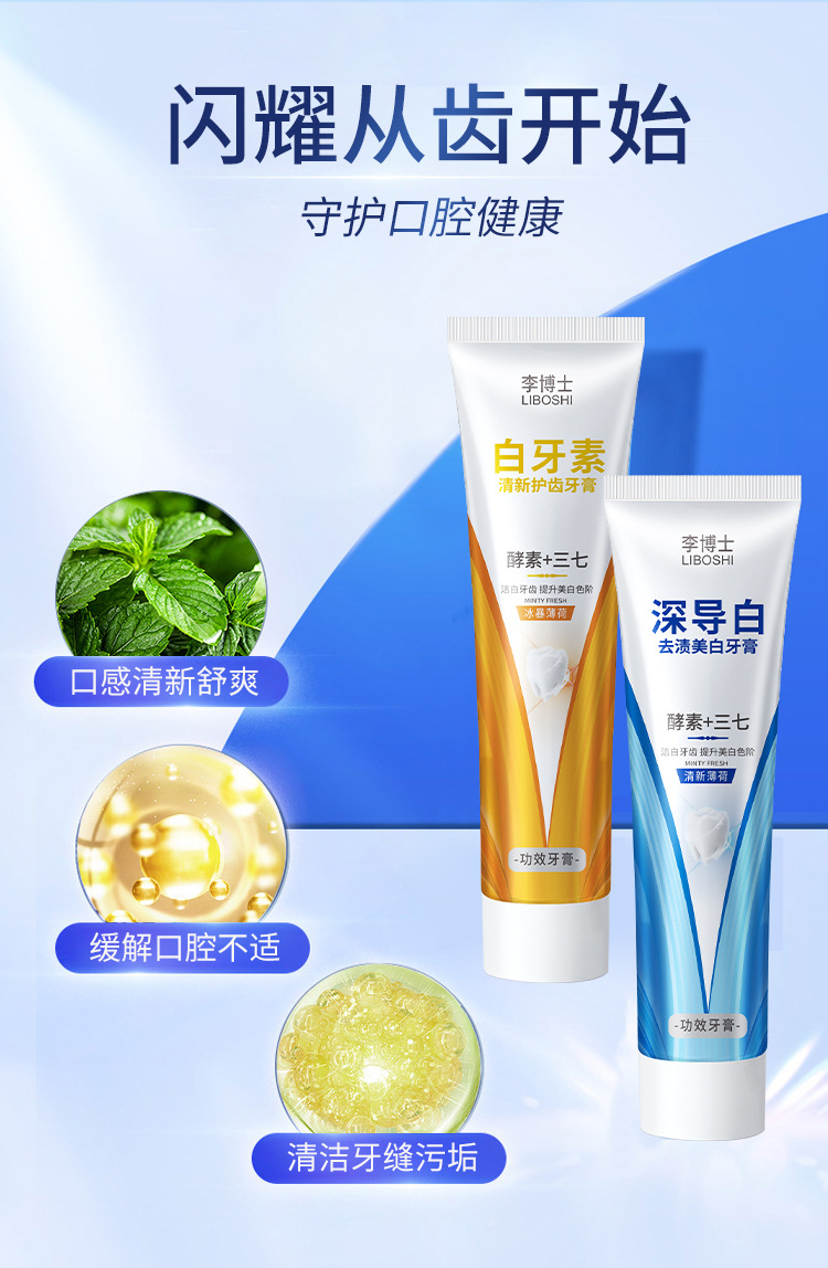 Pasta de dientes blanqueadora probiótica fermentada al por mayor, aliento fresco, blanqueamiento, eliminación de manchas amarillas, eliminación de manchas de humo, pasta de dientes comercial transfronteriza