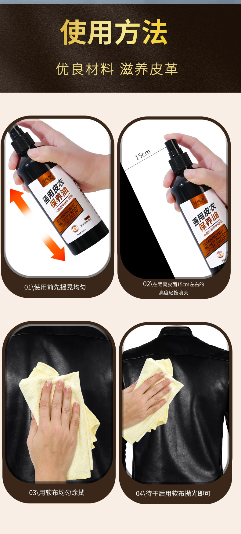 Aceite de mantenimiento de abrigo general limpiador de cuero aceite de mantenimiento de cuero limpiador de bolsas de cuero descontaminación aceite de mantenimiento de chaqueta de cuero