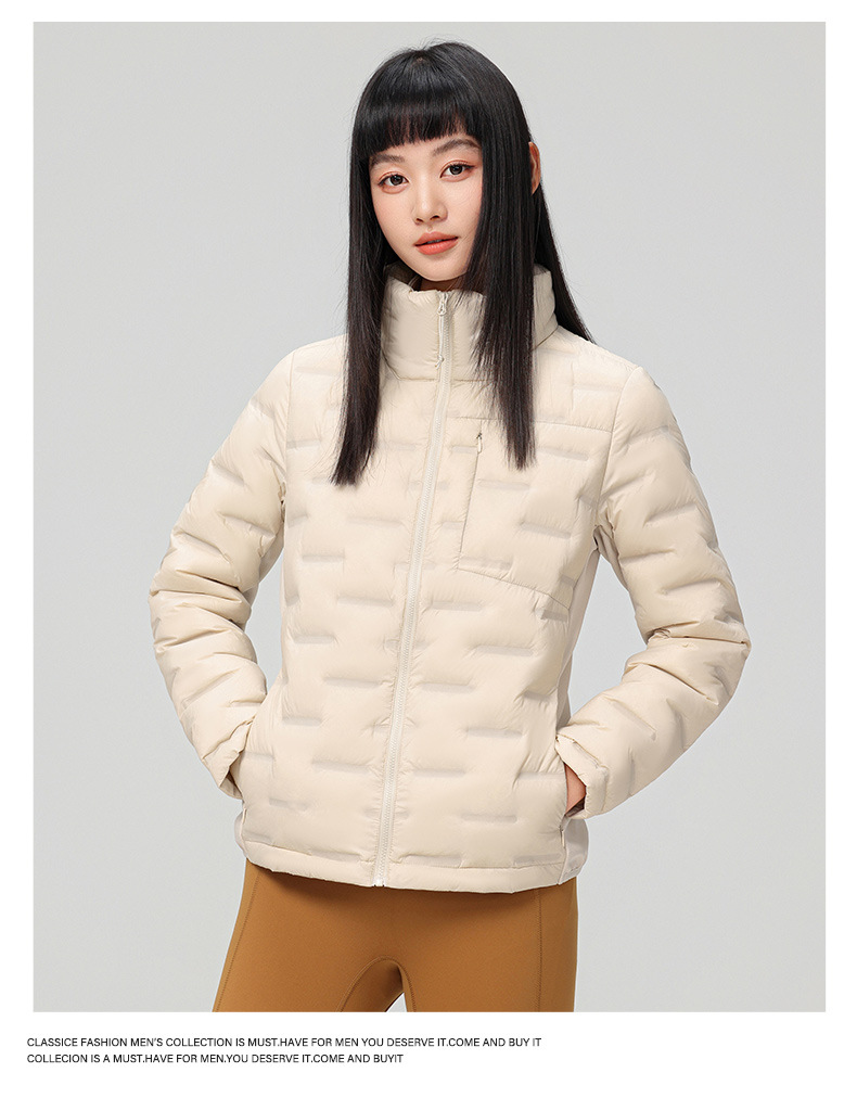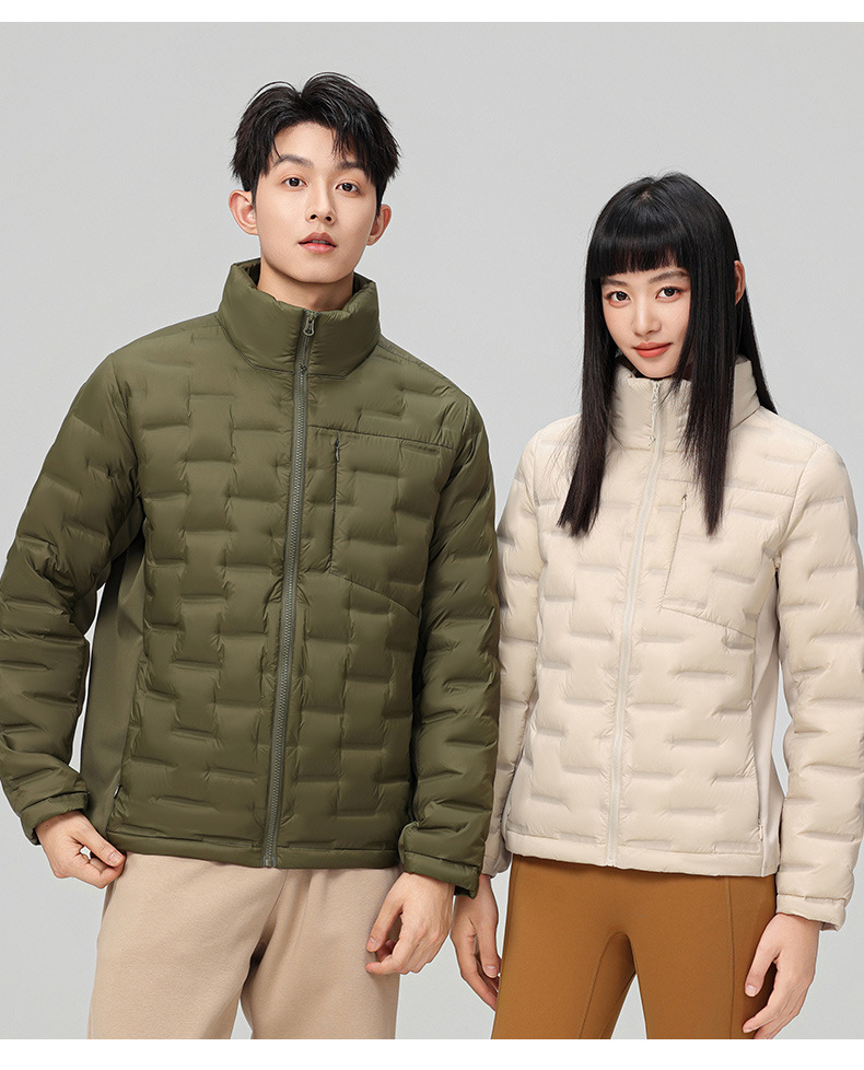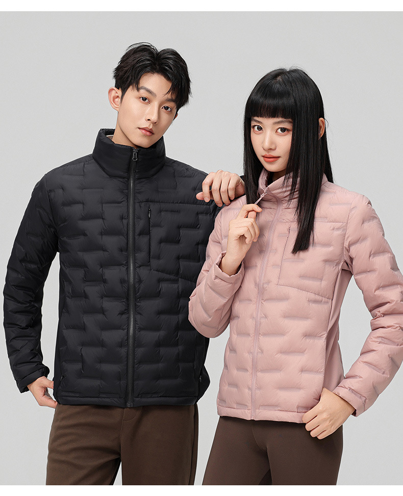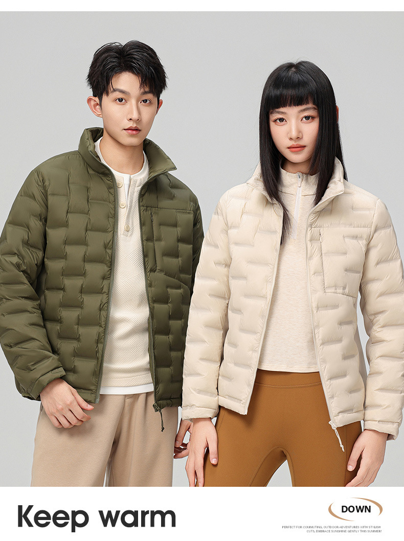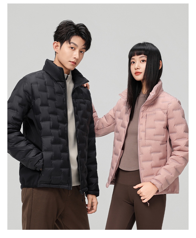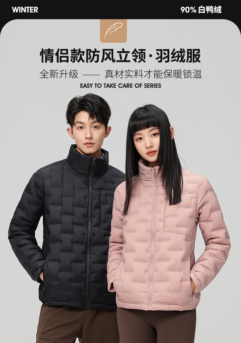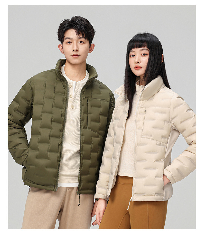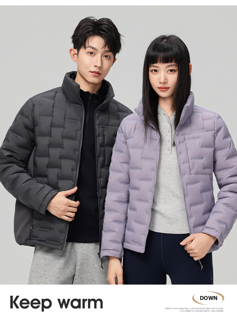 2025 nueva chaqueta de pluma de cuello vertical para mujeres invierno 90 vello a prueba de viento caliente delgado y ligero abrigo de pluma para hombres