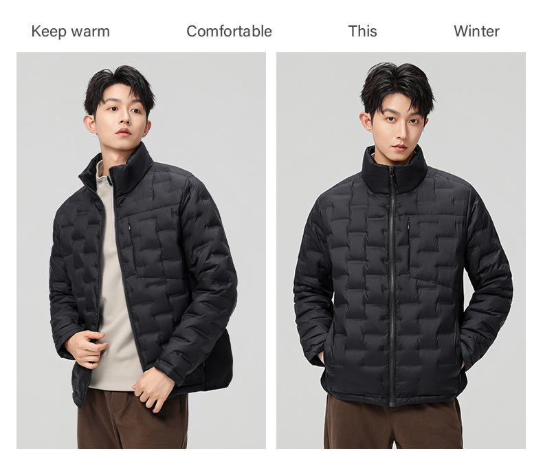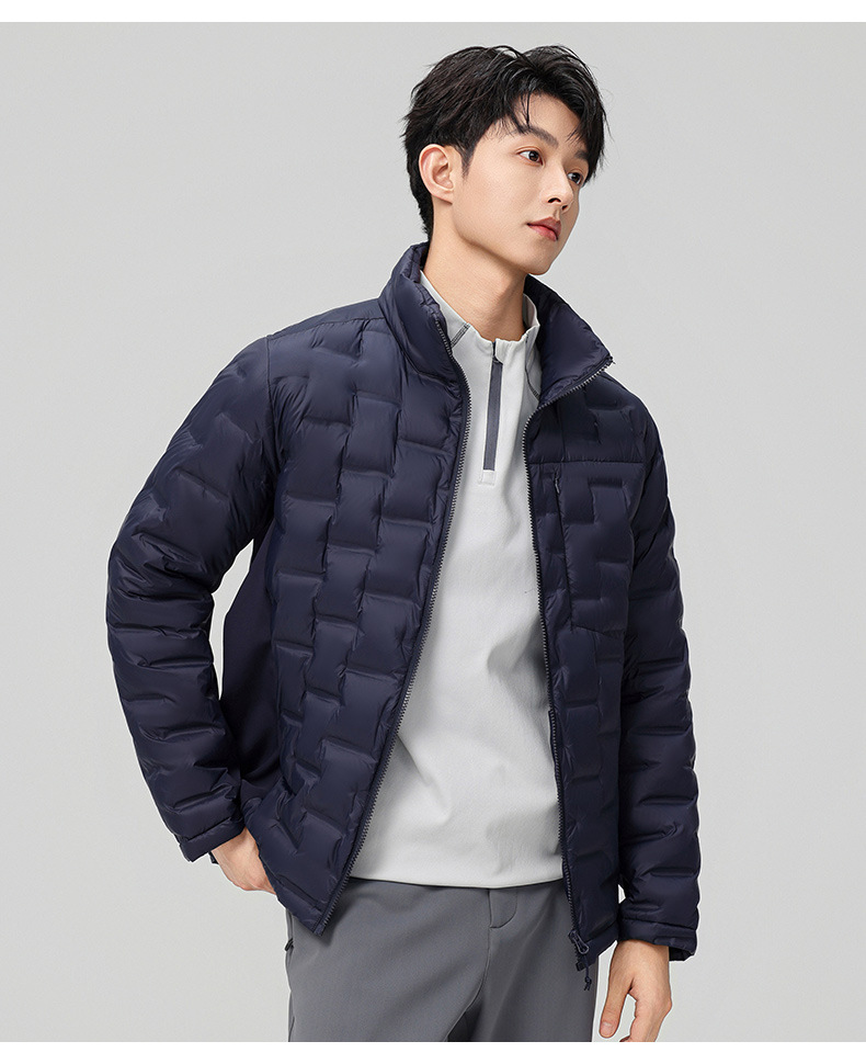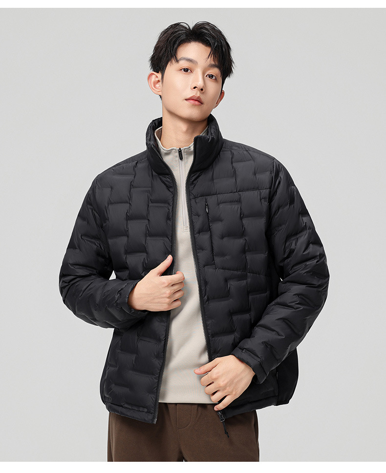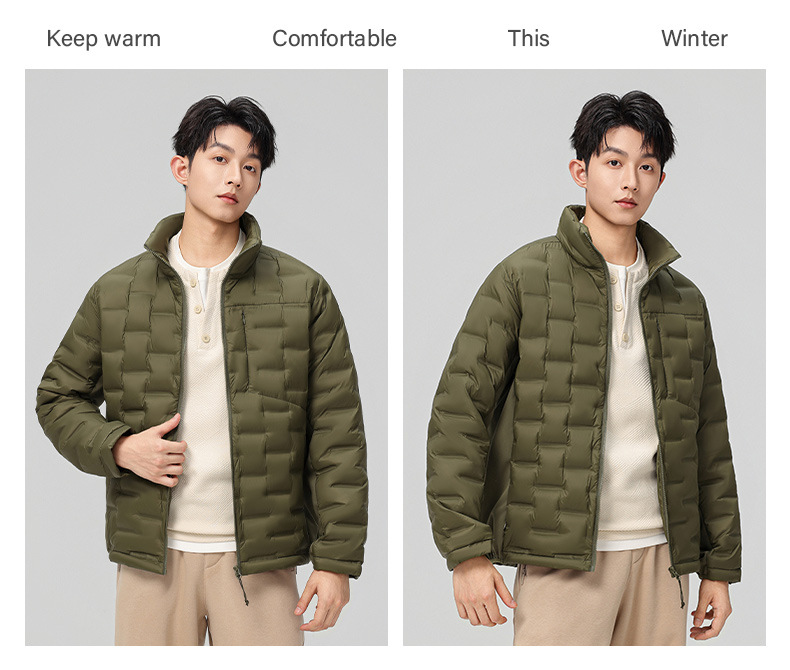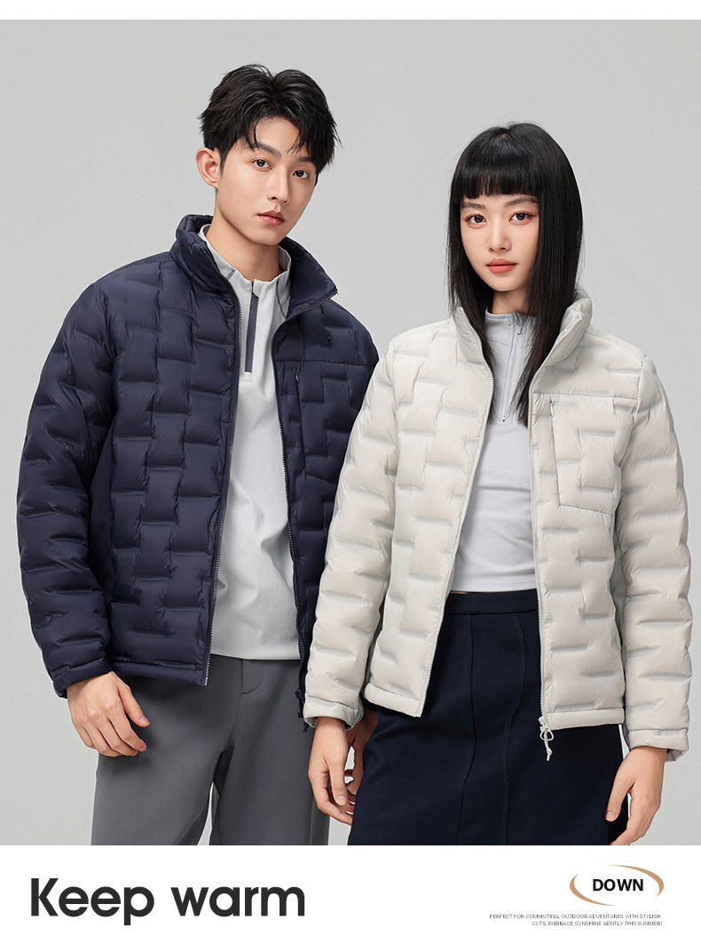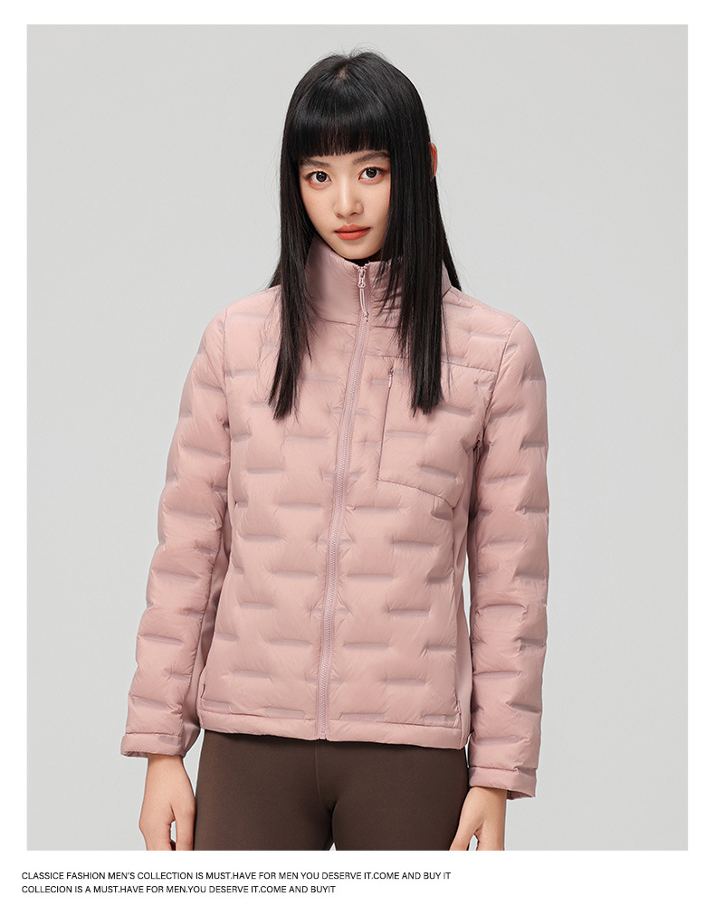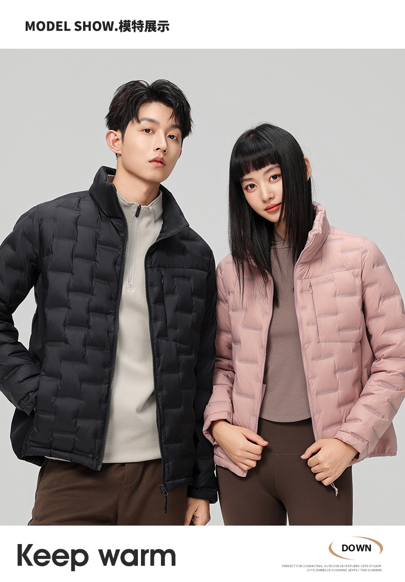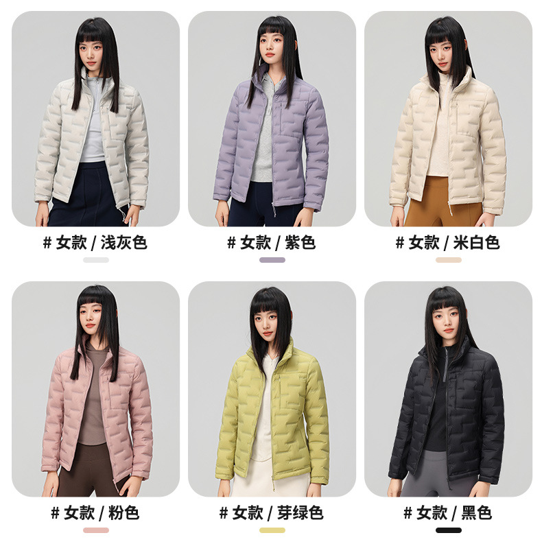 2025 nueva chaqueta de pluma de cuello vertical para mujeres invierno 90 vello a prueba de viento caliente delgado y ligero abrigo de pluma para hombres
