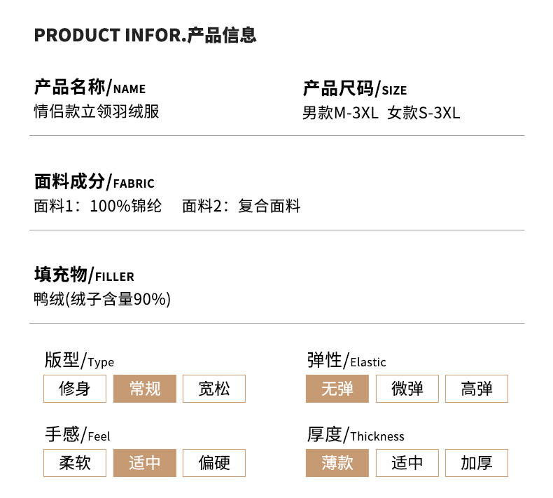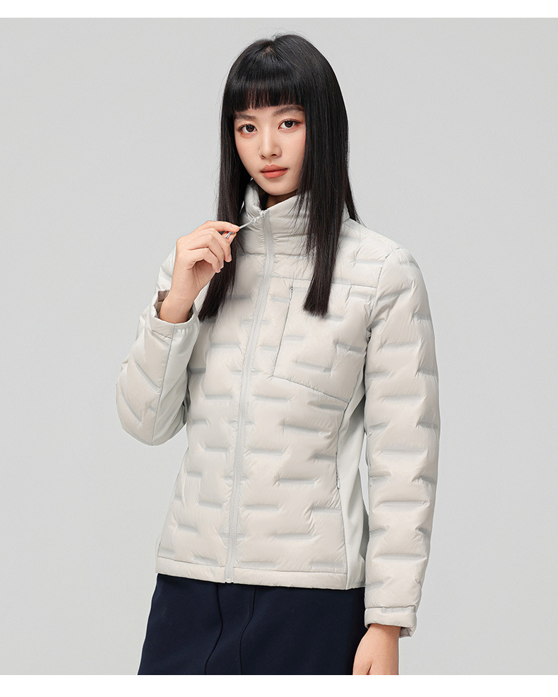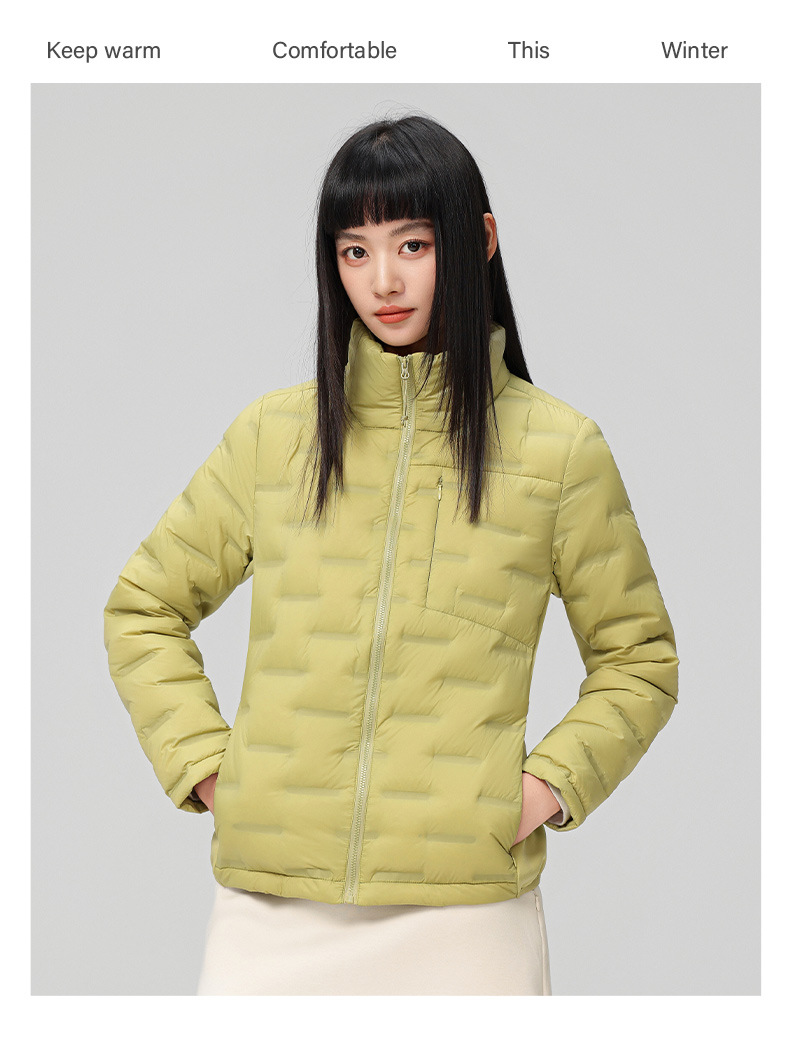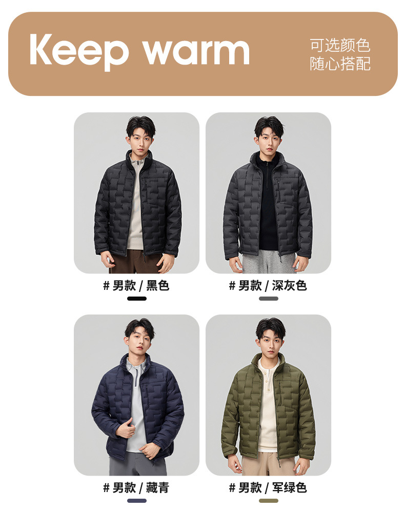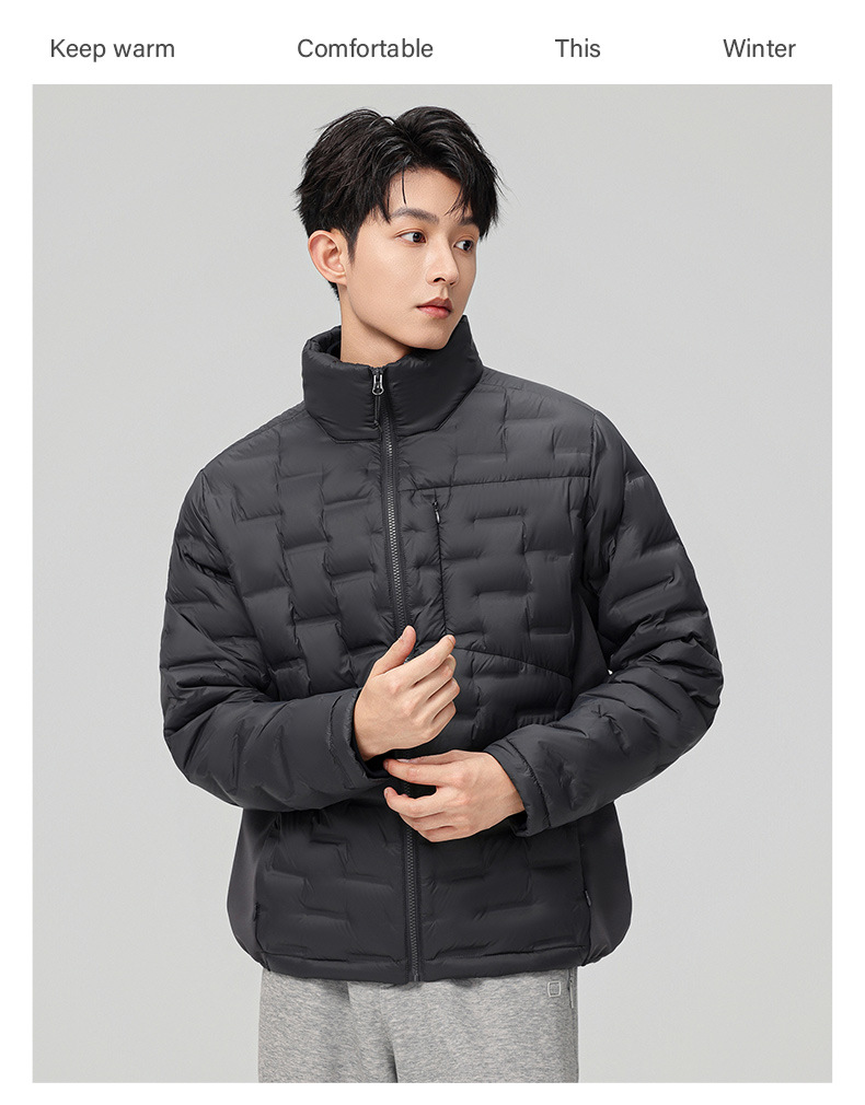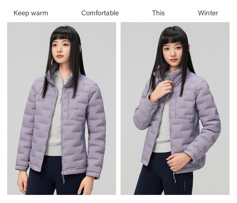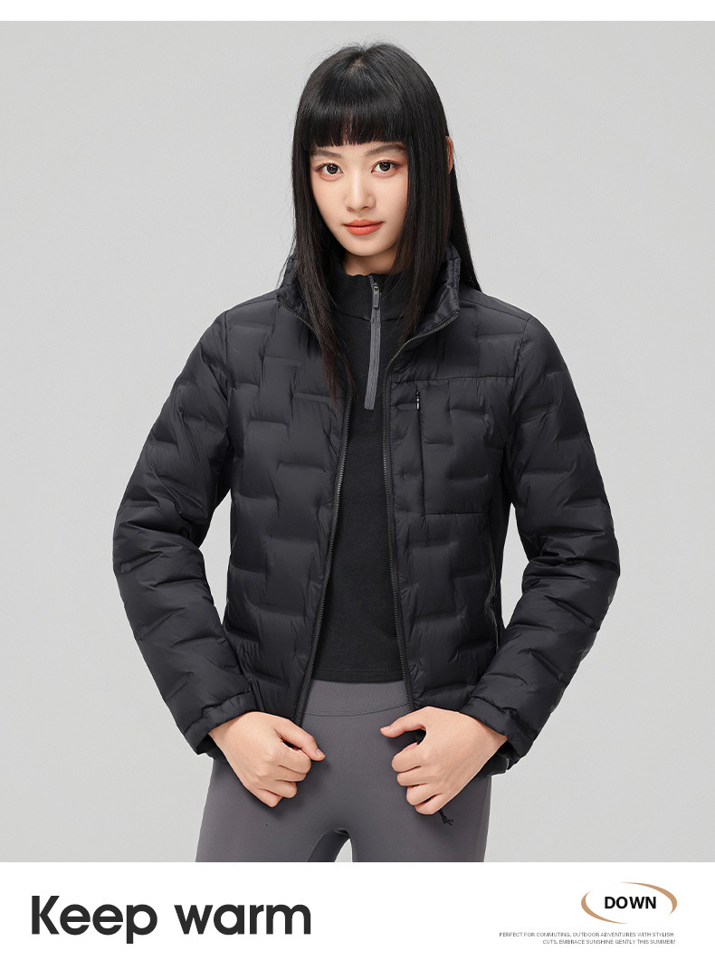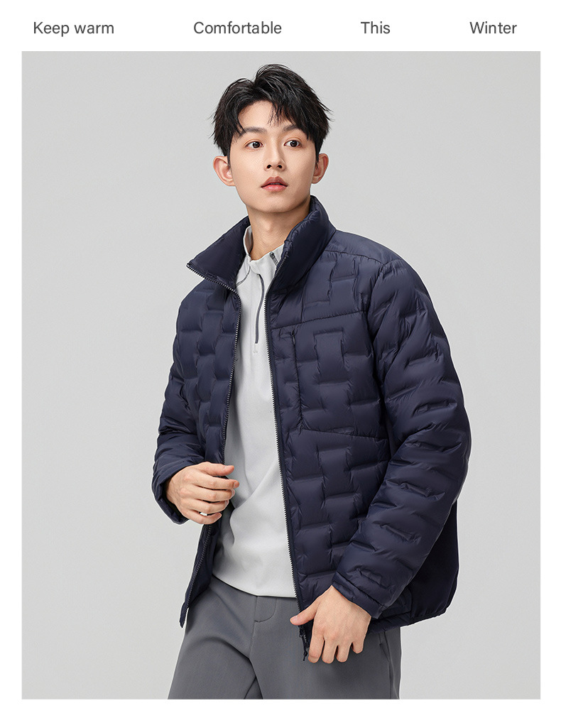 2025 nueva chaqueta de pluma de cuello vertical para mujeres invierno 90 vello a prueba de viento caliente delgado y ligero abrigo de pluma para hombres
