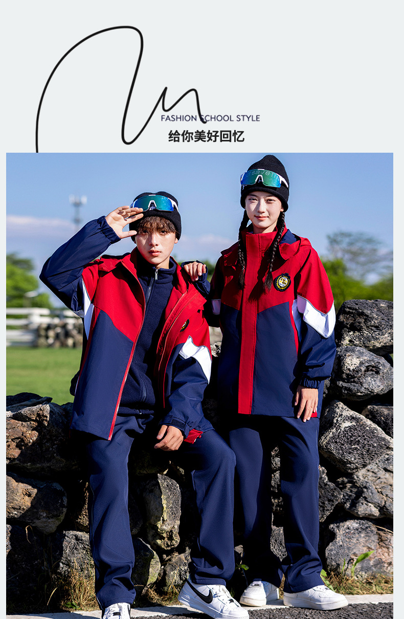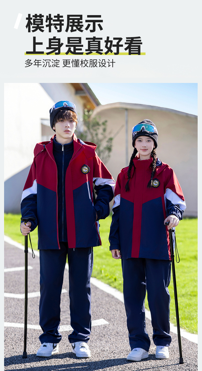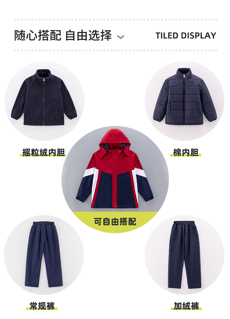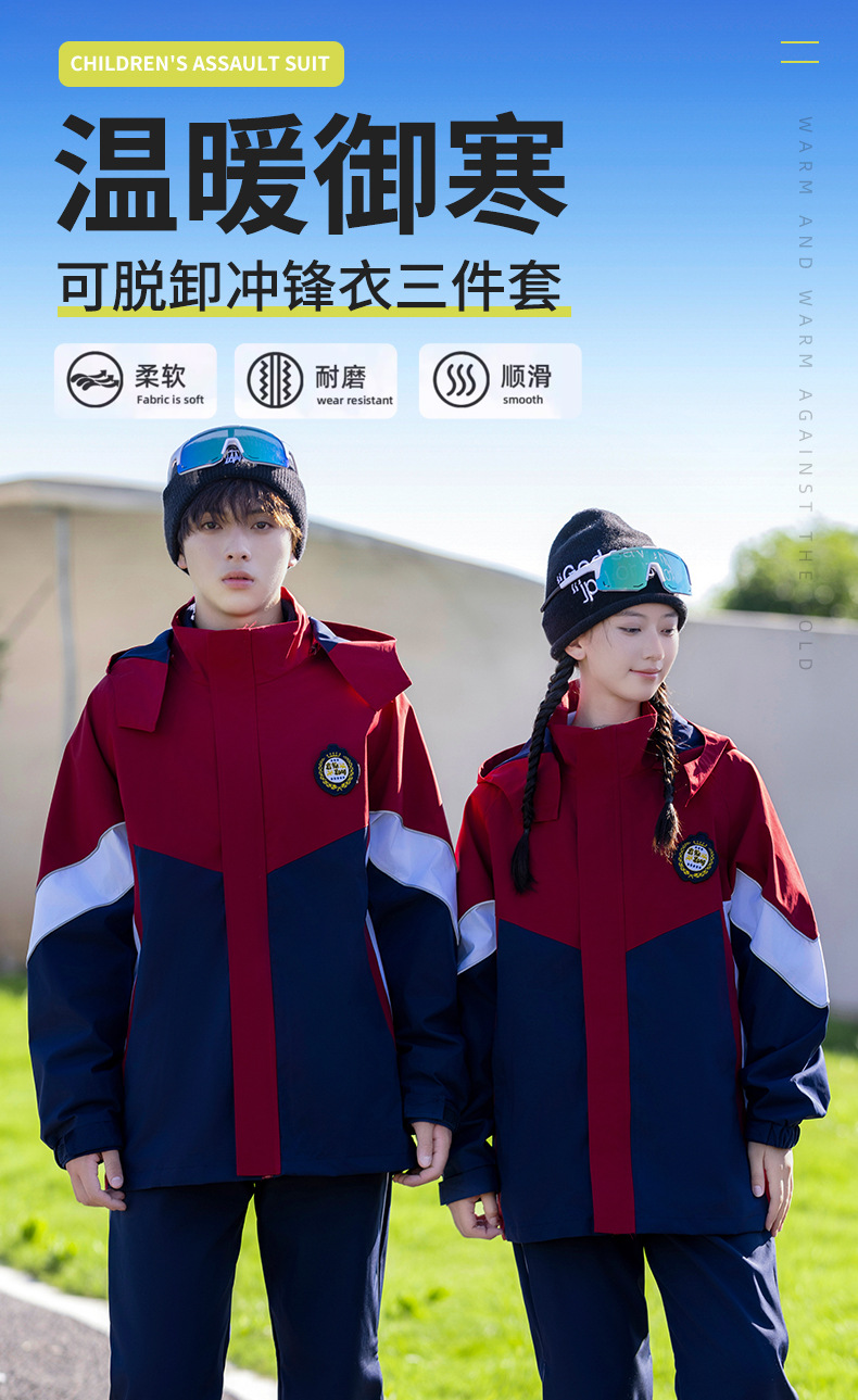 Uniforme escolar de otoño y invierno, traje de asalto grueso 3 - en - 1 desmontable, traje de invierno infantil, conjunto de tres piezas