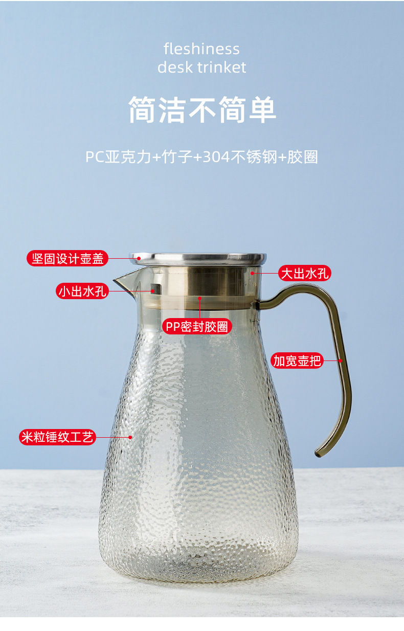 Jarra de agua fría de acrílico, jarra de agua fría de plástico, gran capacidad, resistente al calor, adecuada para restaurantes, uso doméstico, preparación de té, preparación en frío comercial.