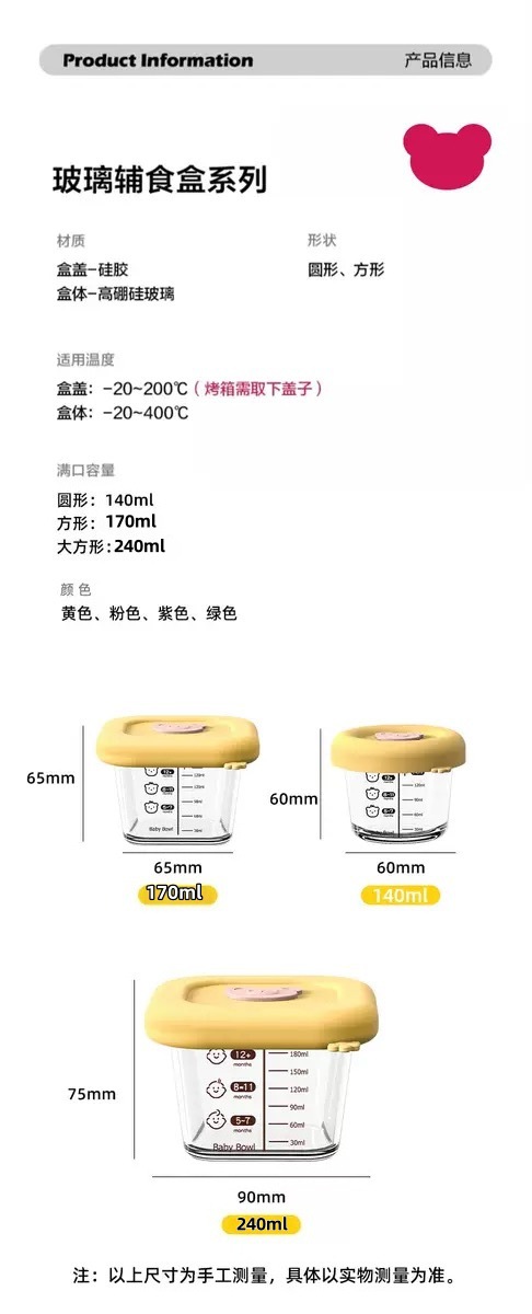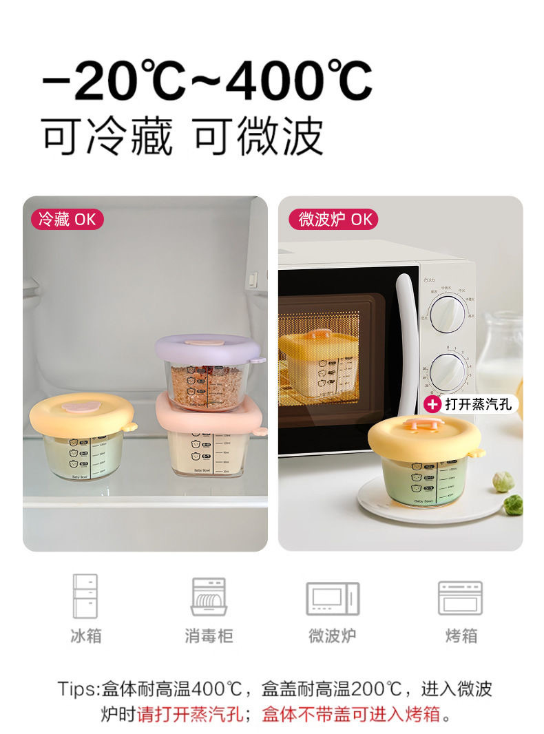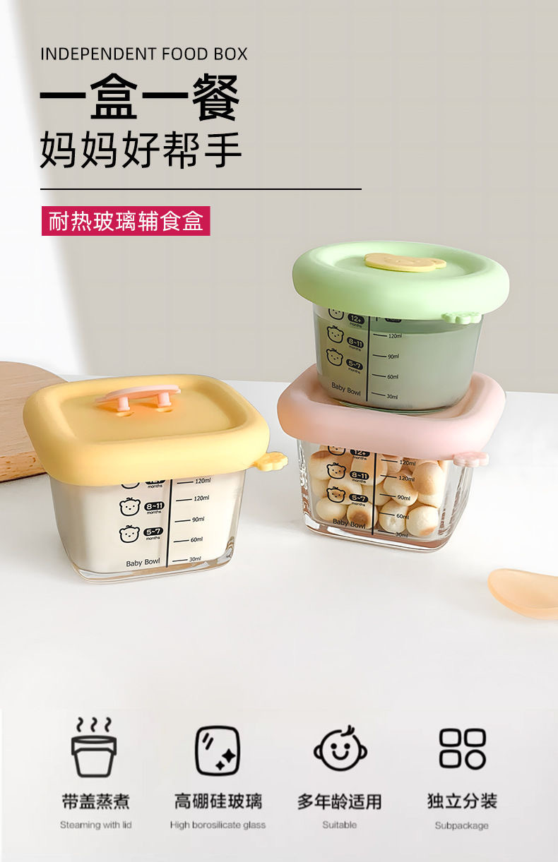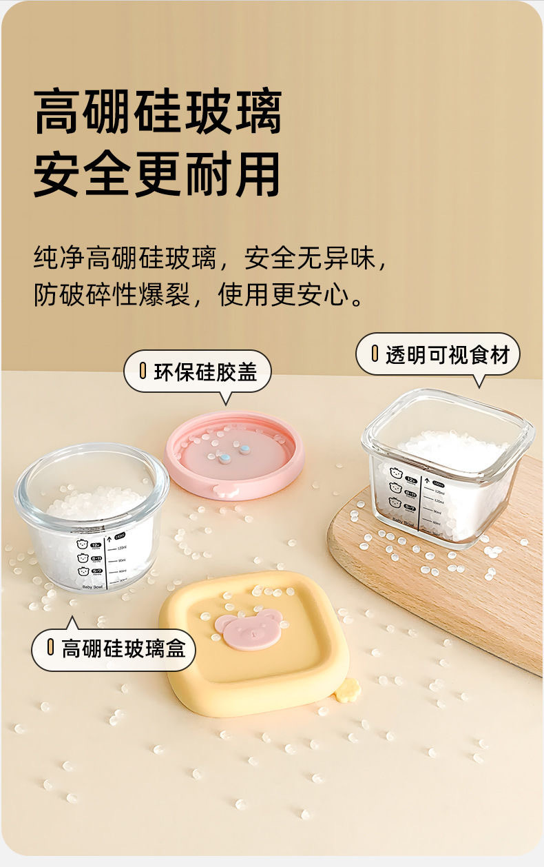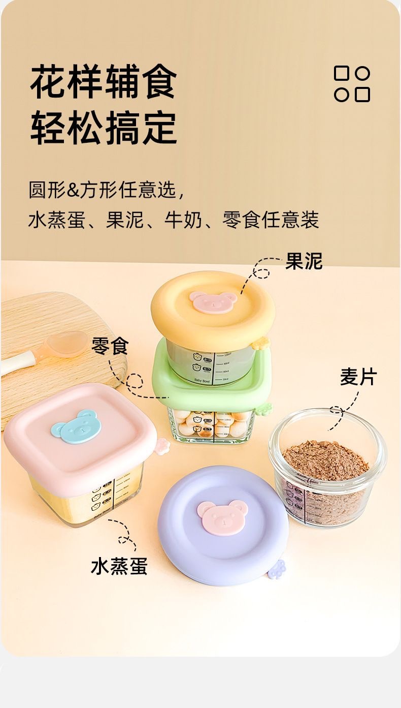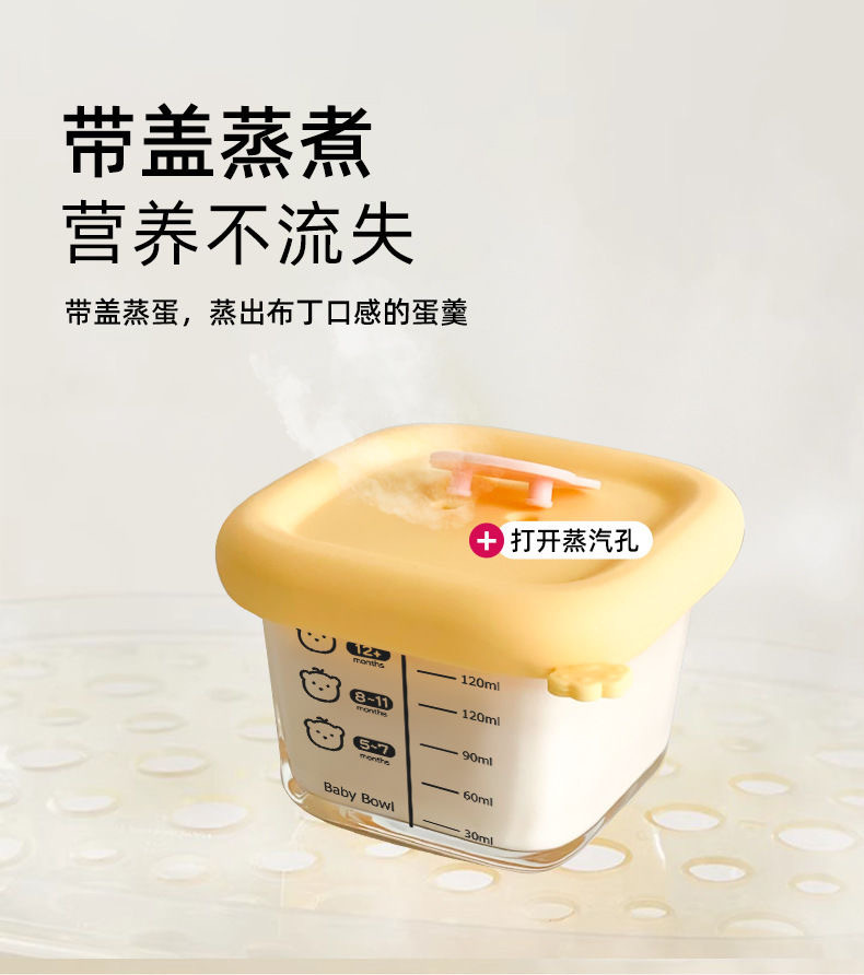 Caja de alimentos suplementarios de vidrio de silicona de alto silicio cubierta con molde especial de sopa de huevo cocinado caja de almacenamiento fresco tazón de alimentos suplementarios para bebés