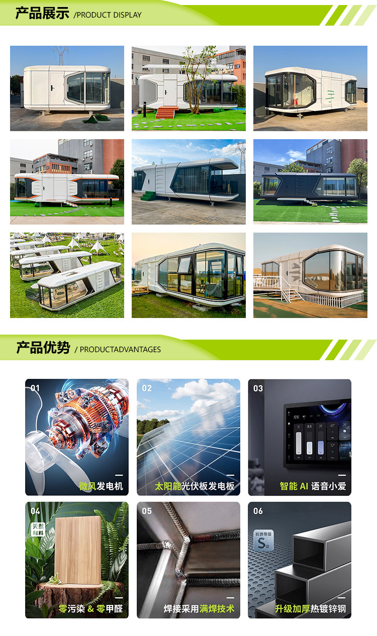 Cápsula espacial prefabricada casa móvil en línea popularidad residencial oficina camping al aire libre sala de sol de doble capa de montaje cápsula de manzana