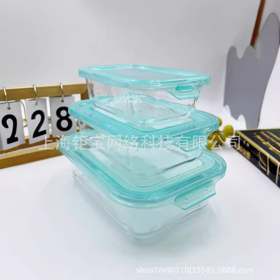 Caja de almuerzo de vidrio resistente a altas temperaturas de alta borosilicona, caja de microondas rectangular, caja de sellado, tazón de vidrio de grado alimenticio para mantener fresco