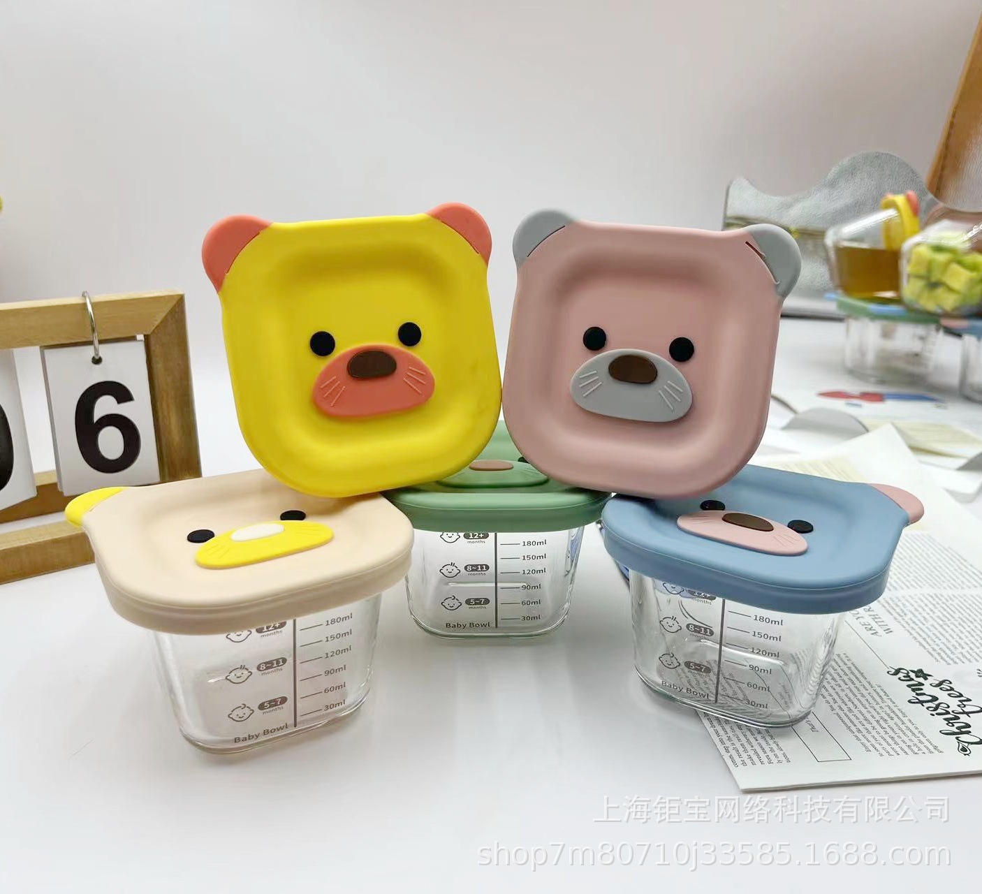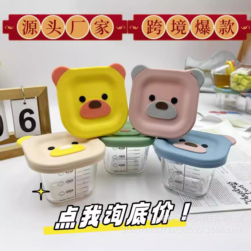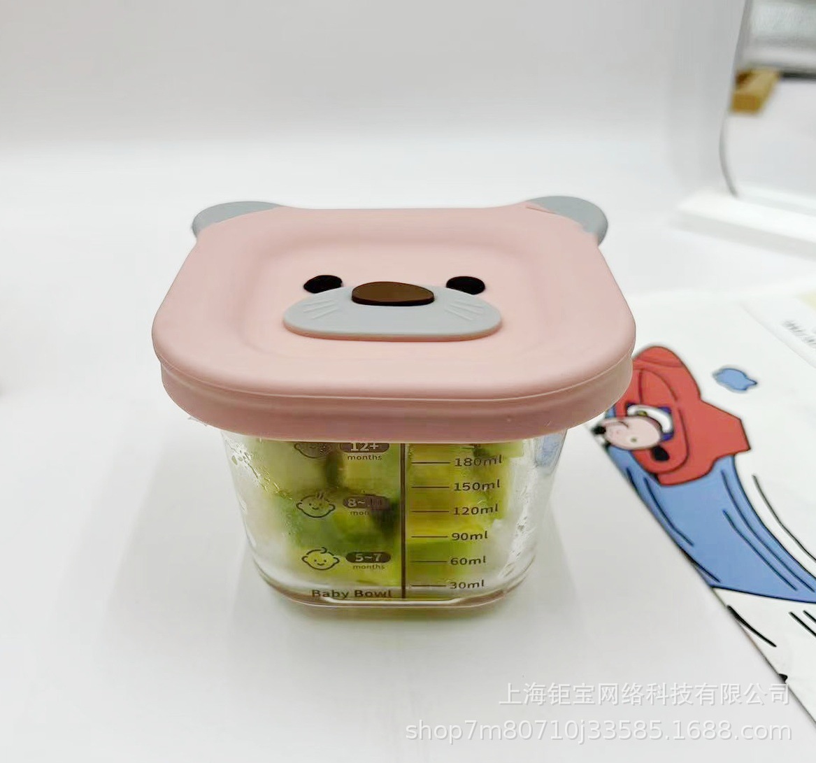 Cubierta de silicona de oso 240ml de alta borosilicona, caja de preservación de alimentos suplementarios, cubierta para bebés, caja de almuerzo, sellado fresco