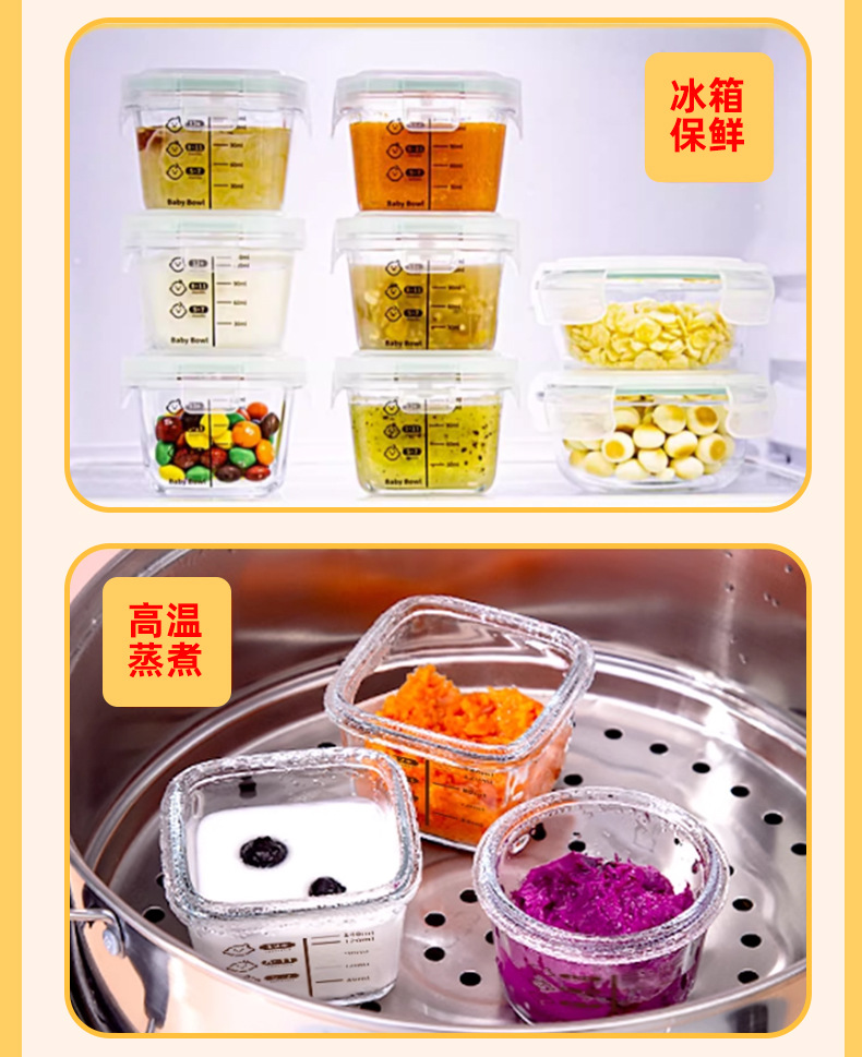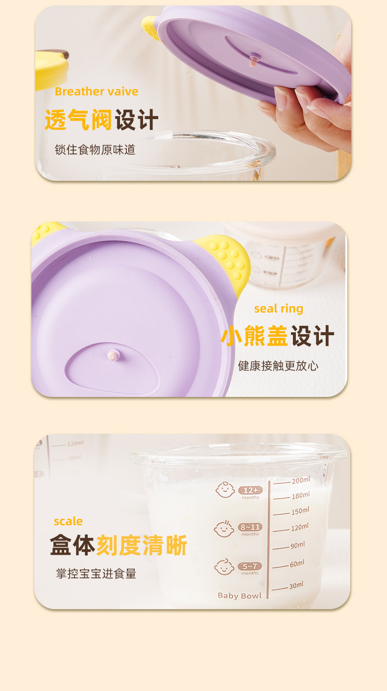 Caja de alimentos suplementarios para bebés sellada y fresca, caja de almacenamiento para bebés, cubierta de silicona de grado alimenticio