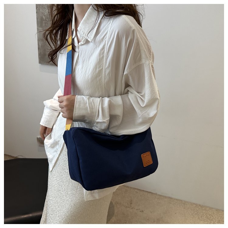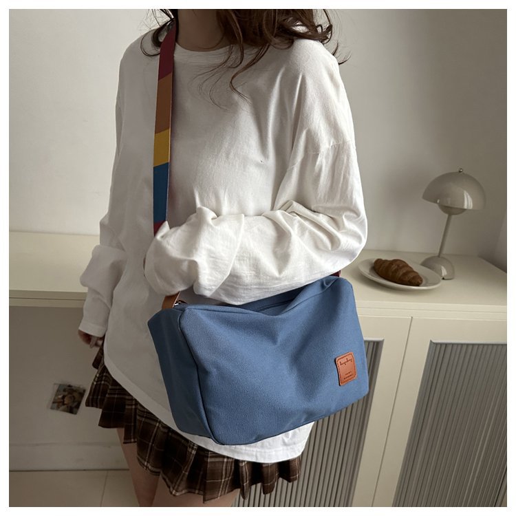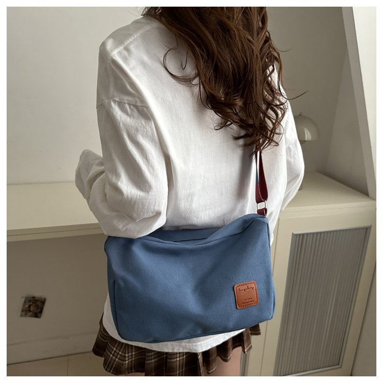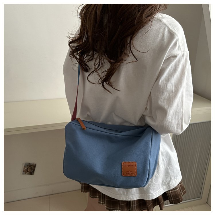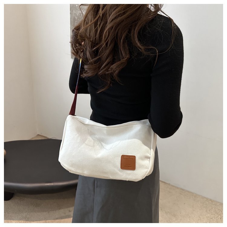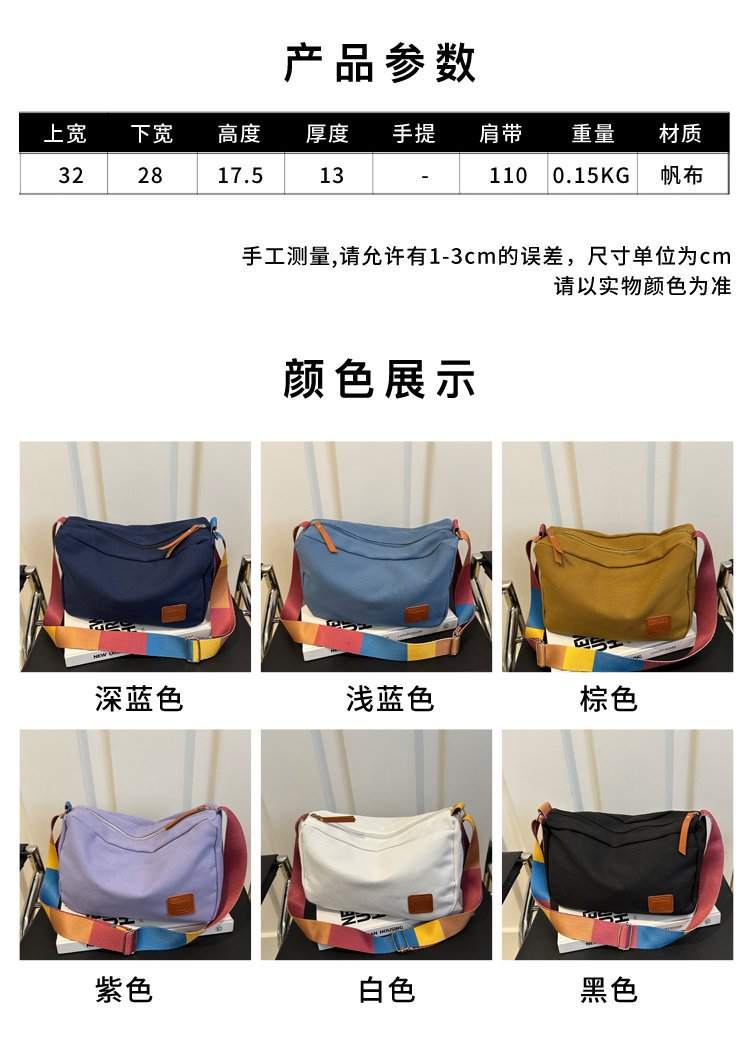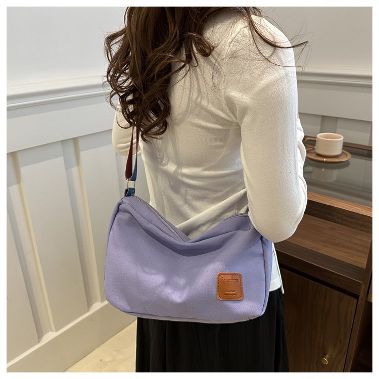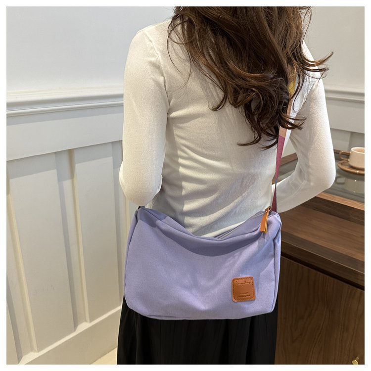 Bolso bandolera de otoño de 2024 de lona de costura estándar real y otras cremalleras