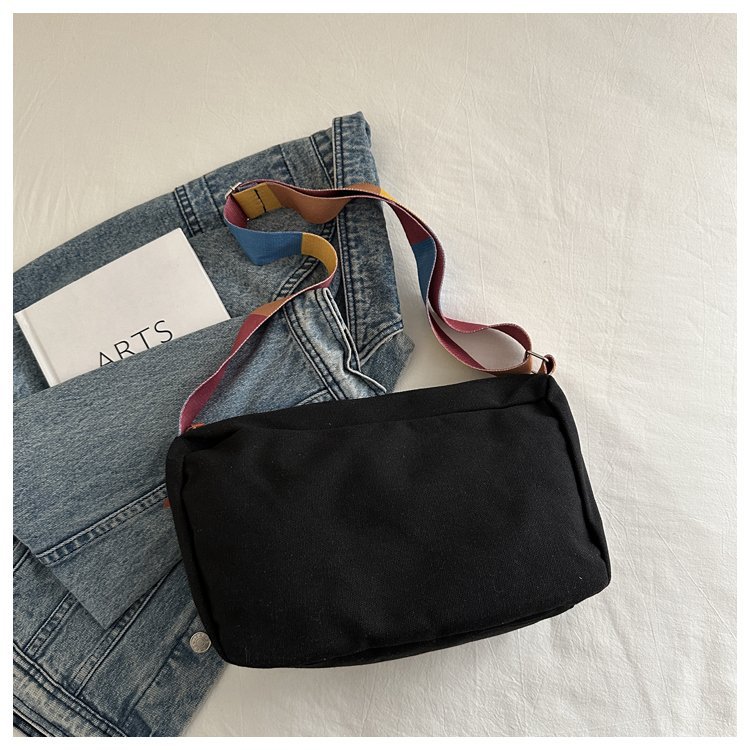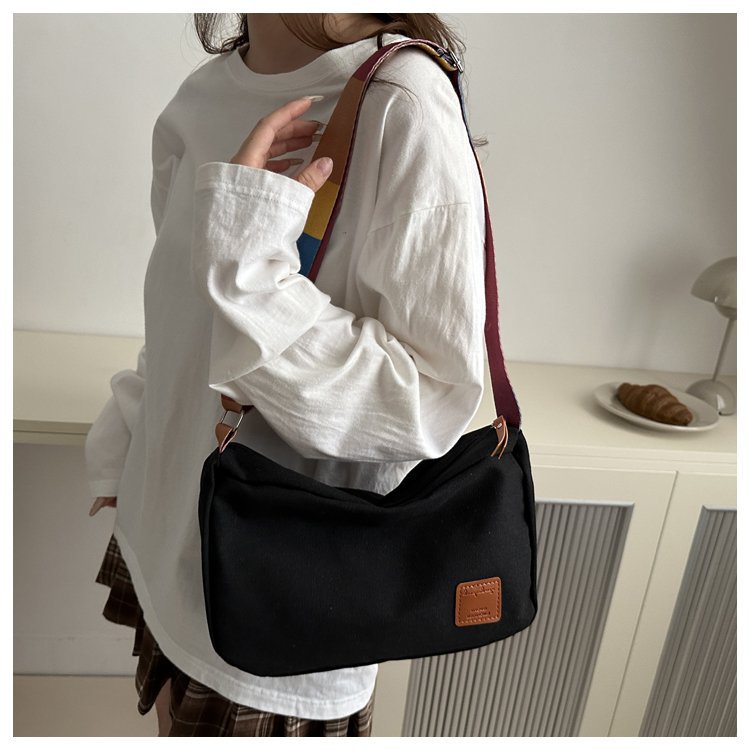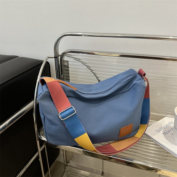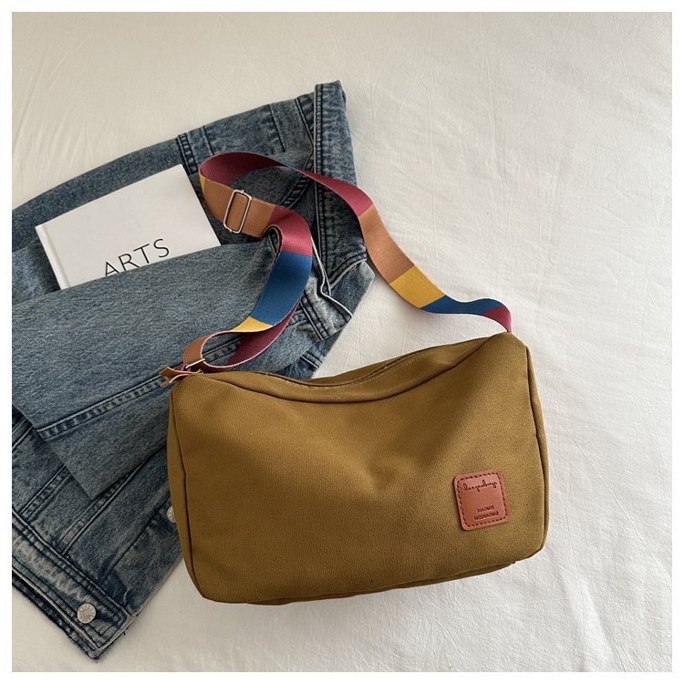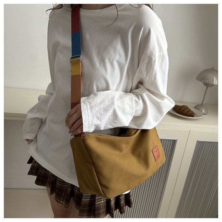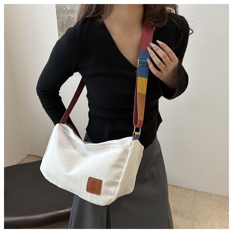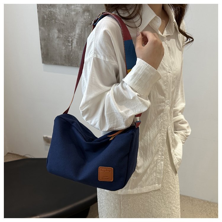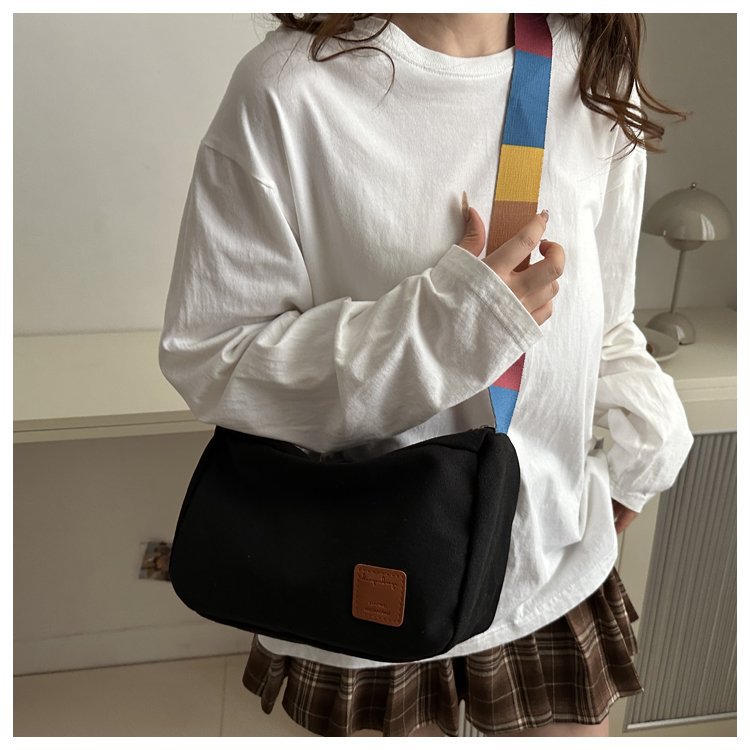 Bolso bandolera de otoño de 2024 de lona de costura estándar real y otras cremalleras