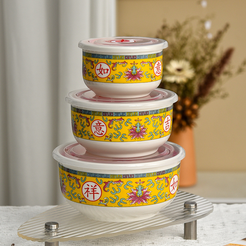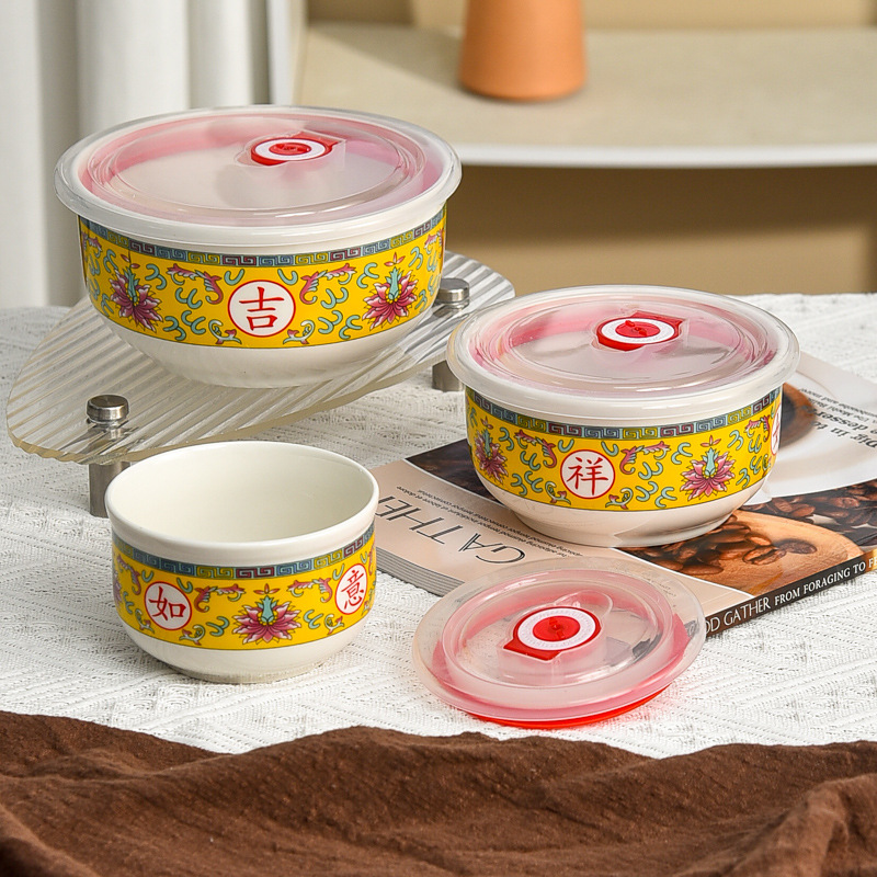 Cerámica vieja caja de almuerzo de cumpleaños, tazón de fiesta, tazón de regalo rojo, agradecimiento, tazón de preservación con cubierta, microondas