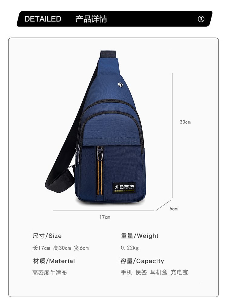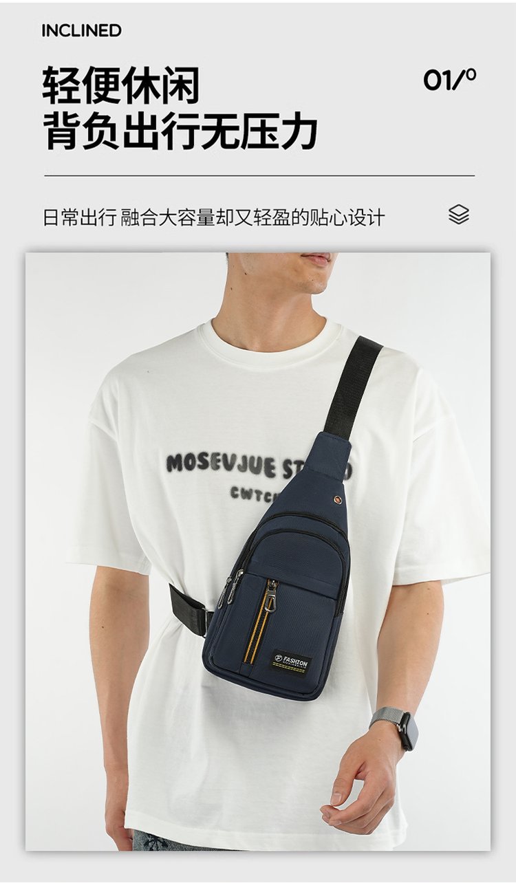Bolso de pecho para hombres, bolso de hombro, tela de nylon impermeable, bolso de pecho de moda, bolso de mochila de hombre.